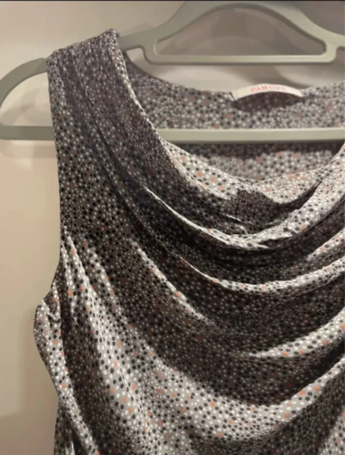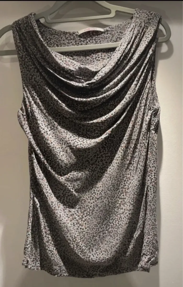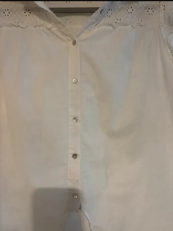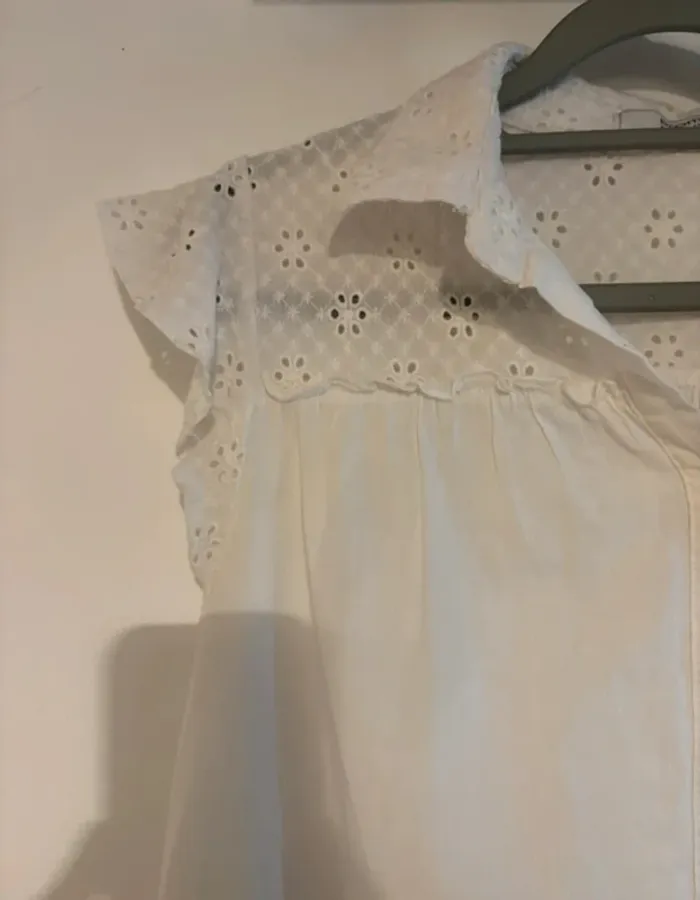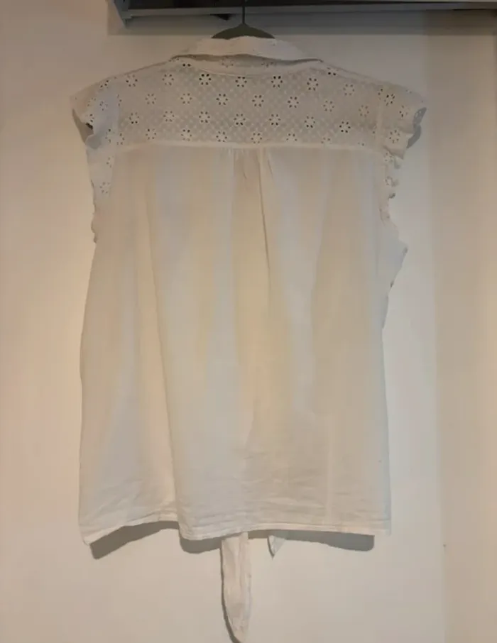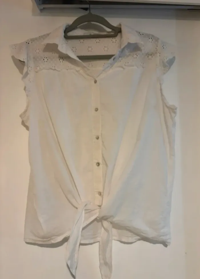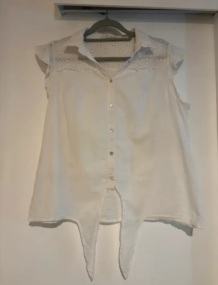 Lot composé de deux hauts sans manches, parfaits pour l’été : 1. Haut Camaïeu à col drapé, motif pois multicolores (noir, blanc, orange). • Tissu : 100 % viscose • Taille : 36 • Très bon état 2. Blouse Promod blanche en broderie anglaise, nouée à la taille. • Boutonnage devant • Détails ajourés aux épaules et dans le dos • Taille : 36 • Très bon état Tops légers, féminins et confortables. Idéal pour compléter votre dressing estival à petit prix. #été #topfemme #lookété #Camaieu #Promod #taille36 #lotvinted #blanche #broderie #pois #vintedfrance #modefemme #hautléger #femme36 #kawaba #top36