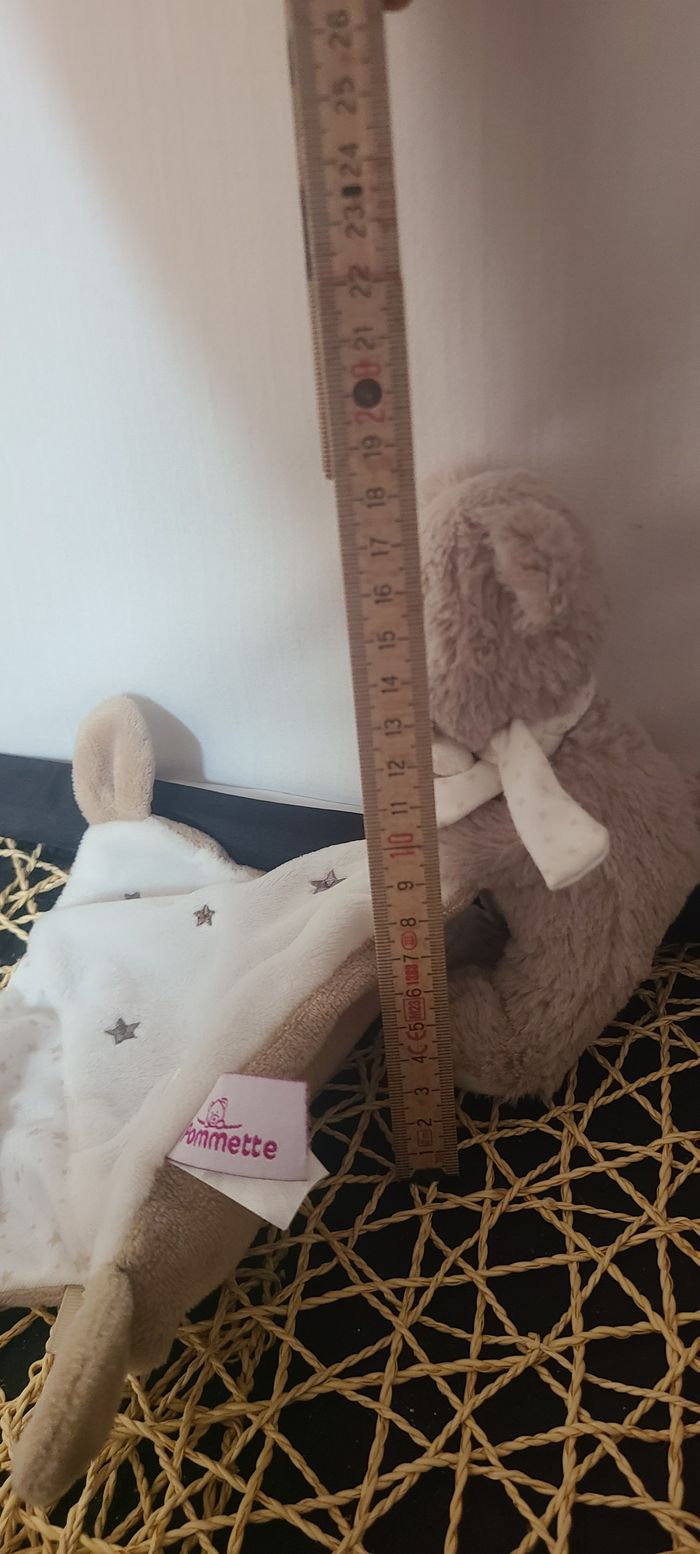 Doudou ours gris beige blanc marron POMMETTE mouchoir étoiles - photo numéro 1