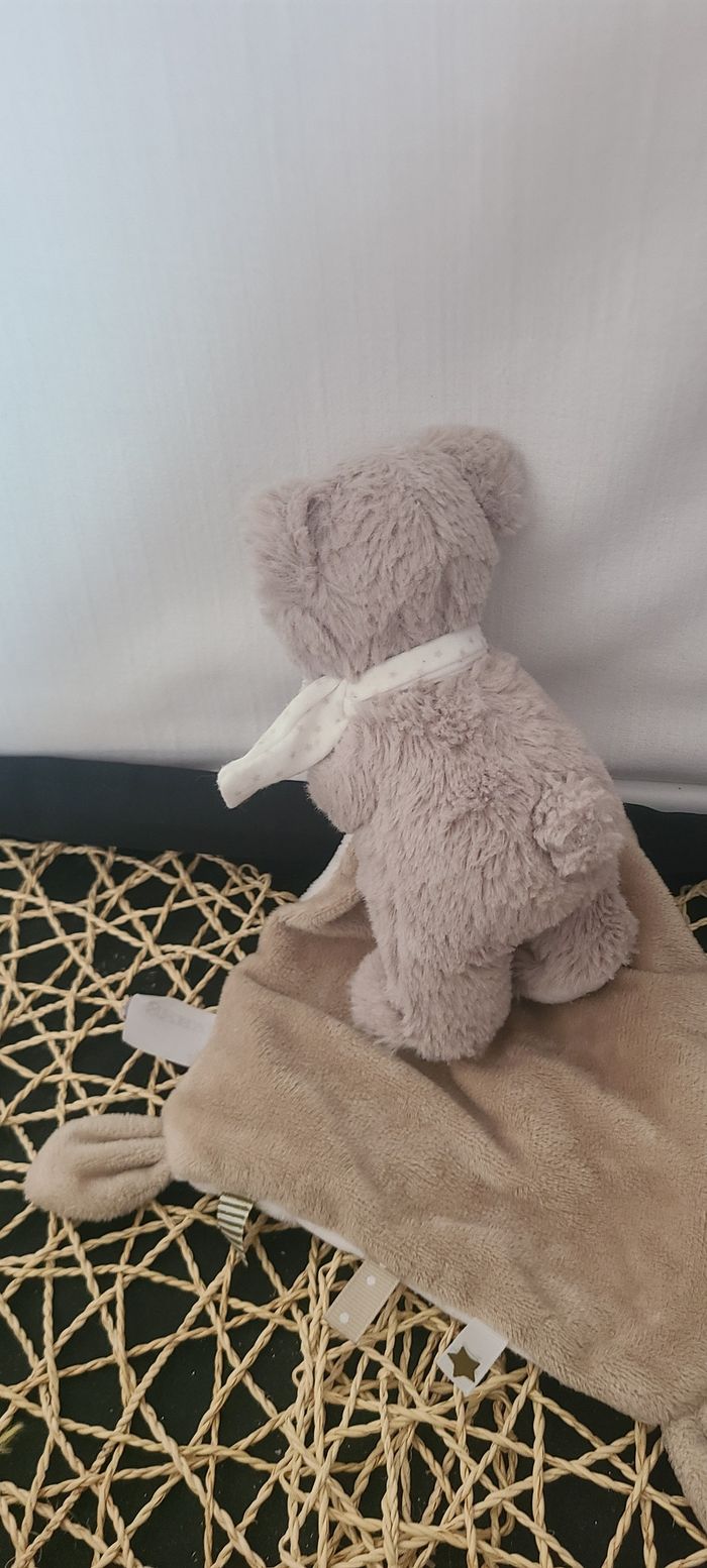 Doudou ours gris beige blanc marron POMMETTE mouchoir étoiles - photo numéro 3