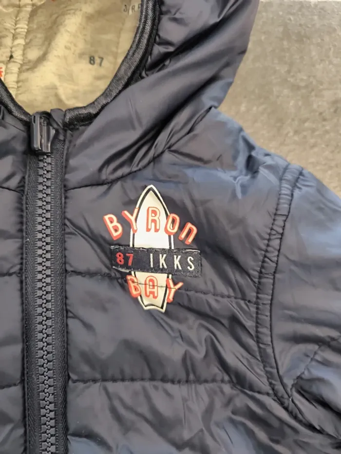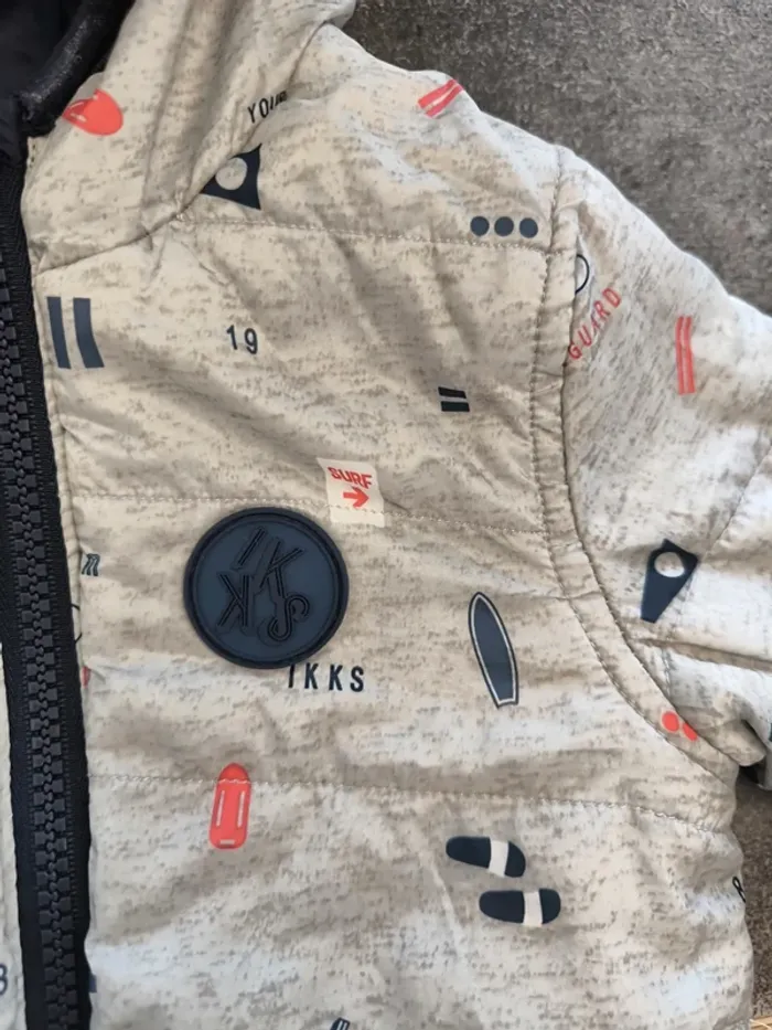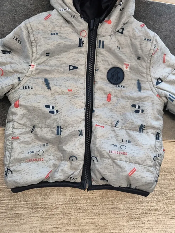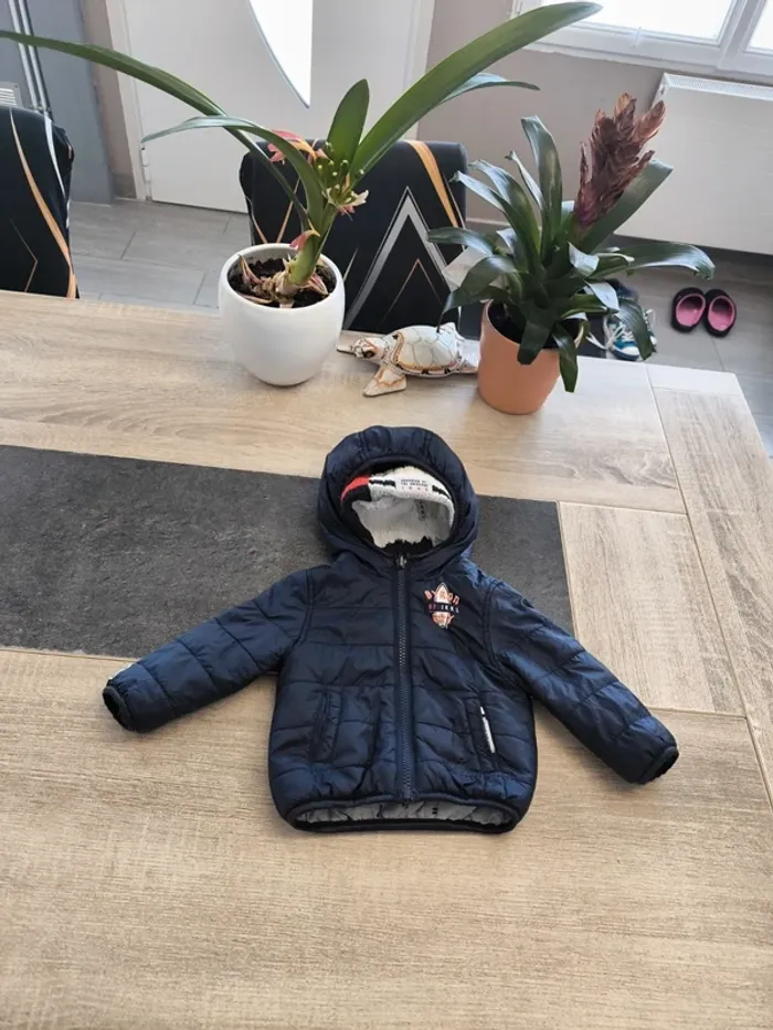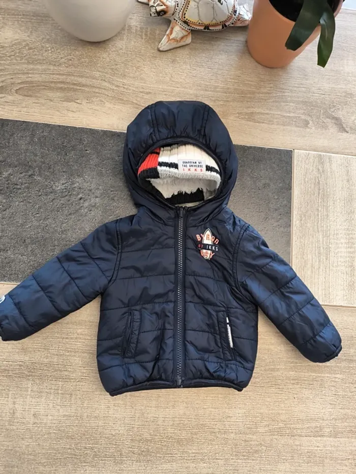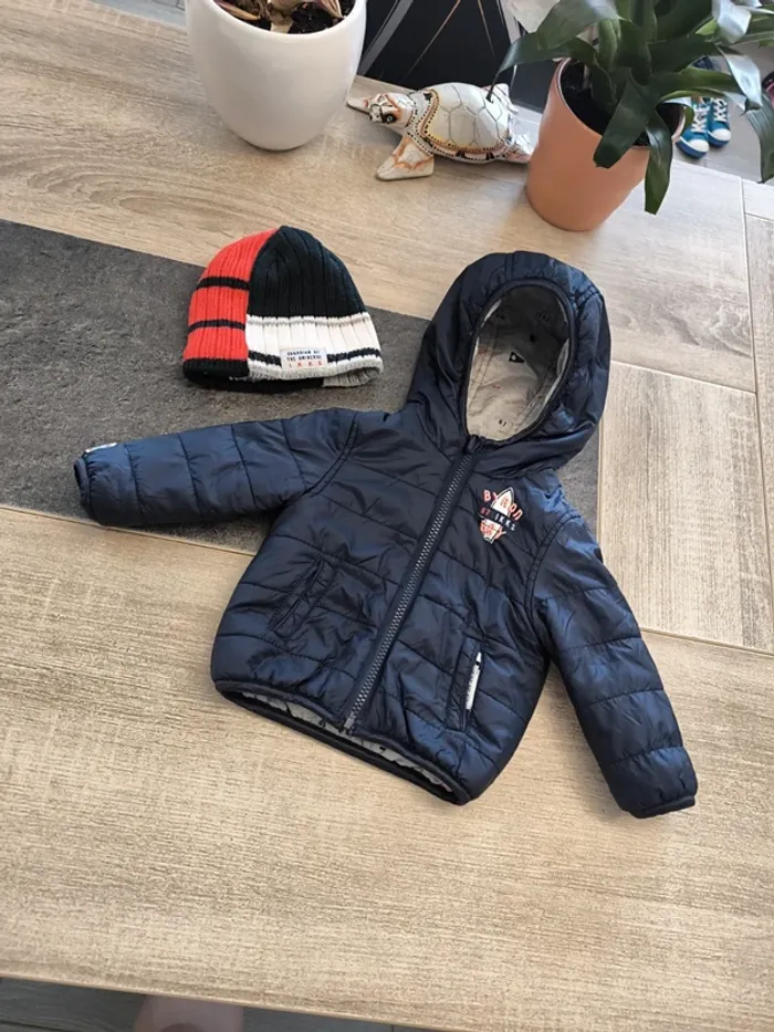 Superbe doudoune réversible et son bonnet garçon taille 12 mois de la marque IKKS en parfait état.