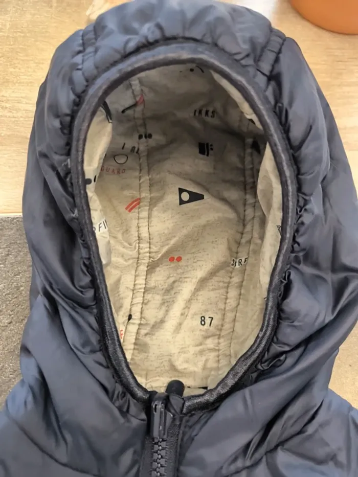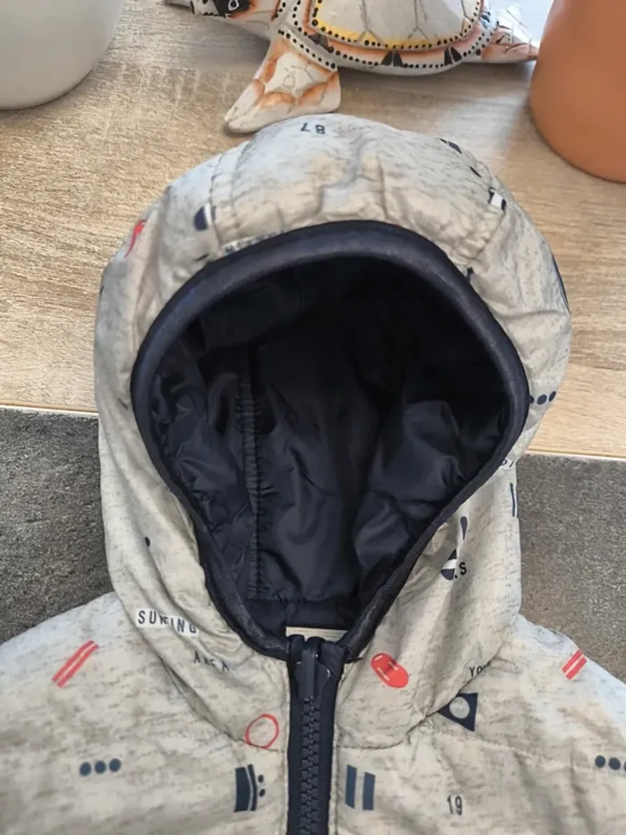 Sa doudoune réversible à capuche avec fermeture éclair ok et motif brodé impeccable