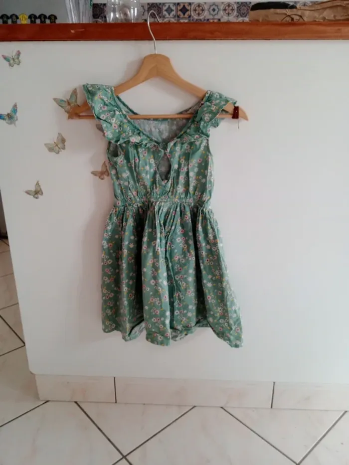 Robe fille 8 ans verte petites fleurs c 87 - photo numéro 1