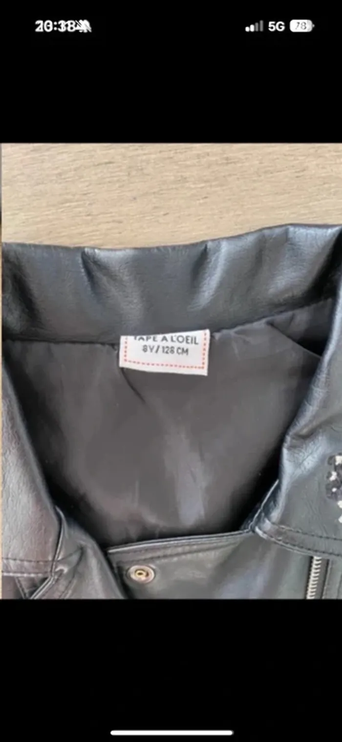 Perfecto fille Tape à l’œil en très bon état. Il présente un défaut à l’arrière d’une des manches comme visible sur les photos. #hautsfille8ansleanelyne