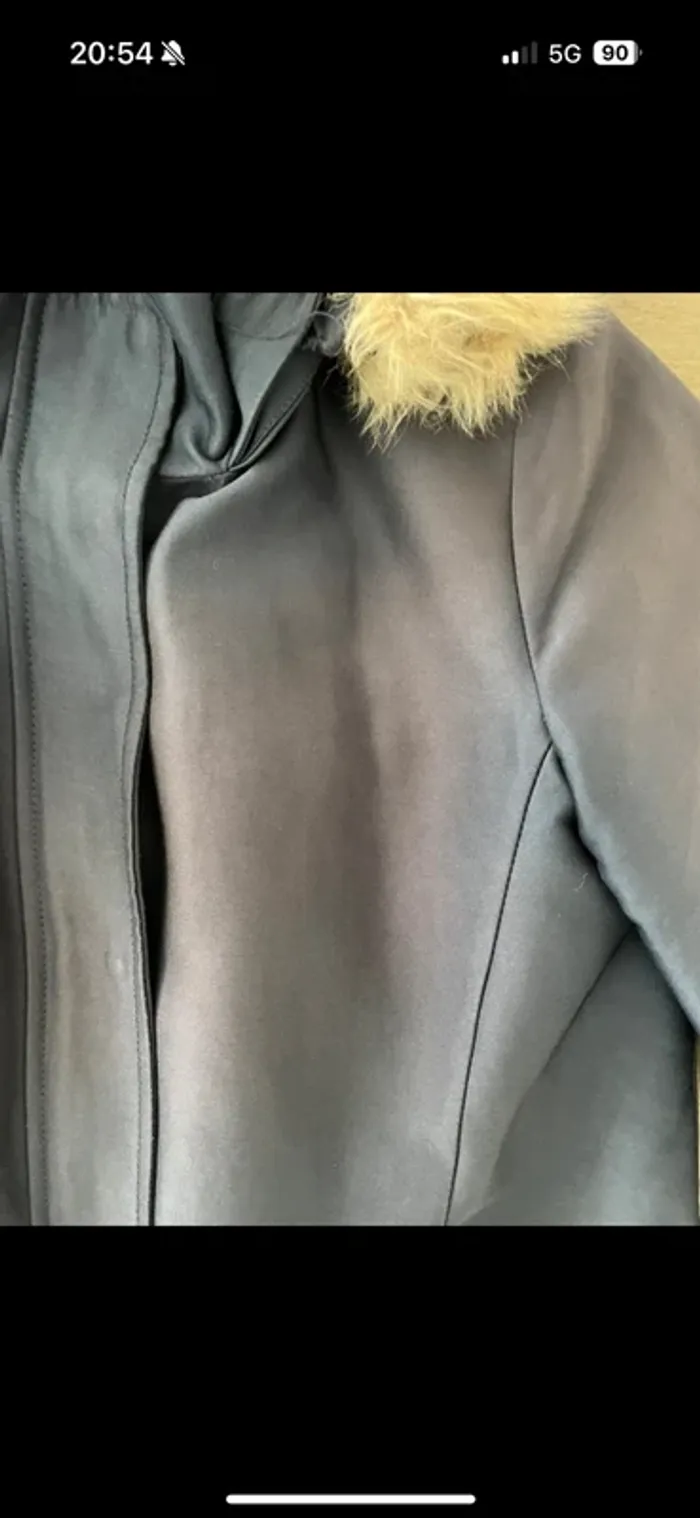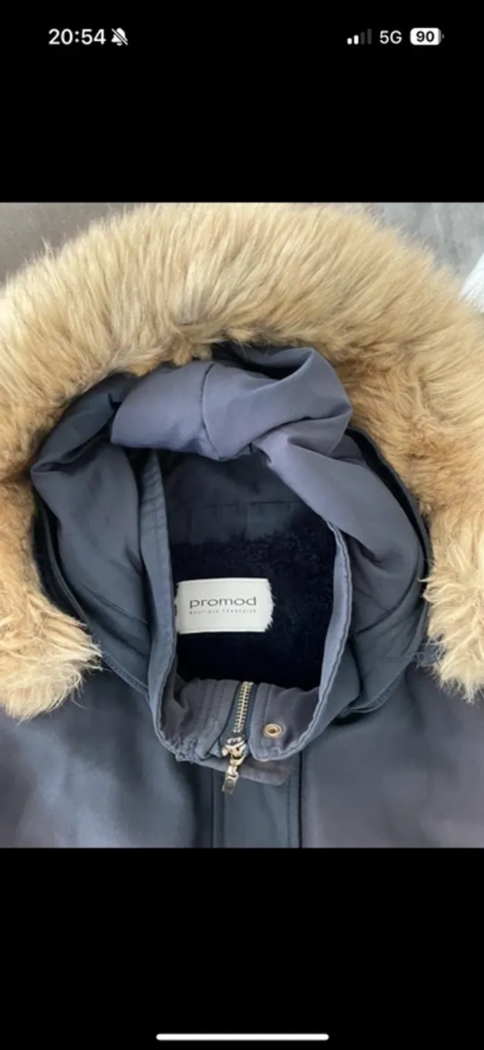Manteau femme Promod en état satisfaisant. Il présente des traces de décoloration ( moins prononcées en réalité) comme visibles sur les photos. Il est doublé. La matière est un peu satinée. #manteaufemme36leanelyne