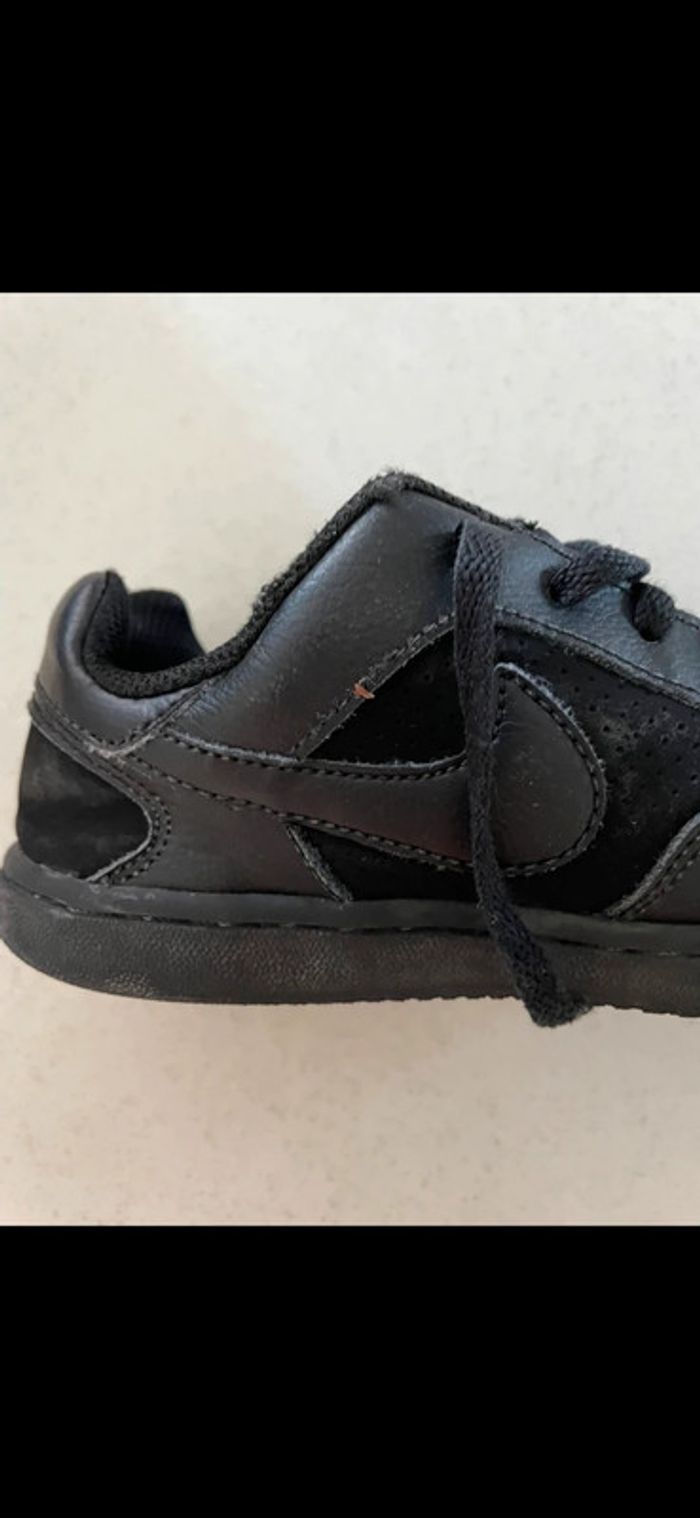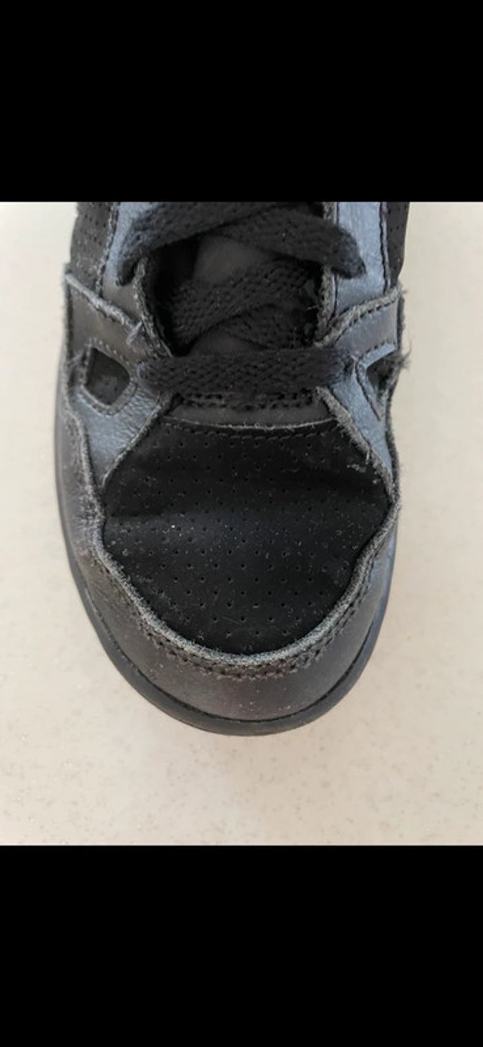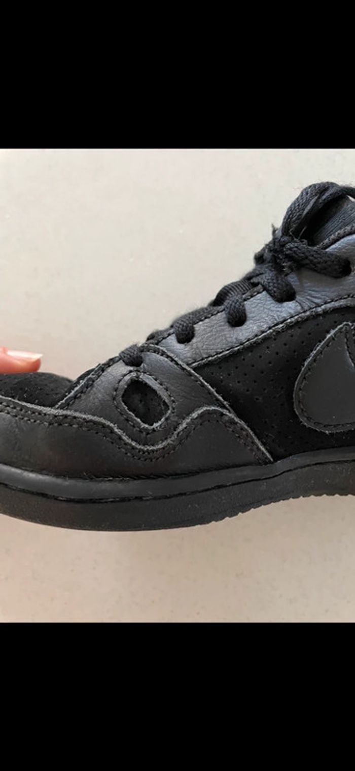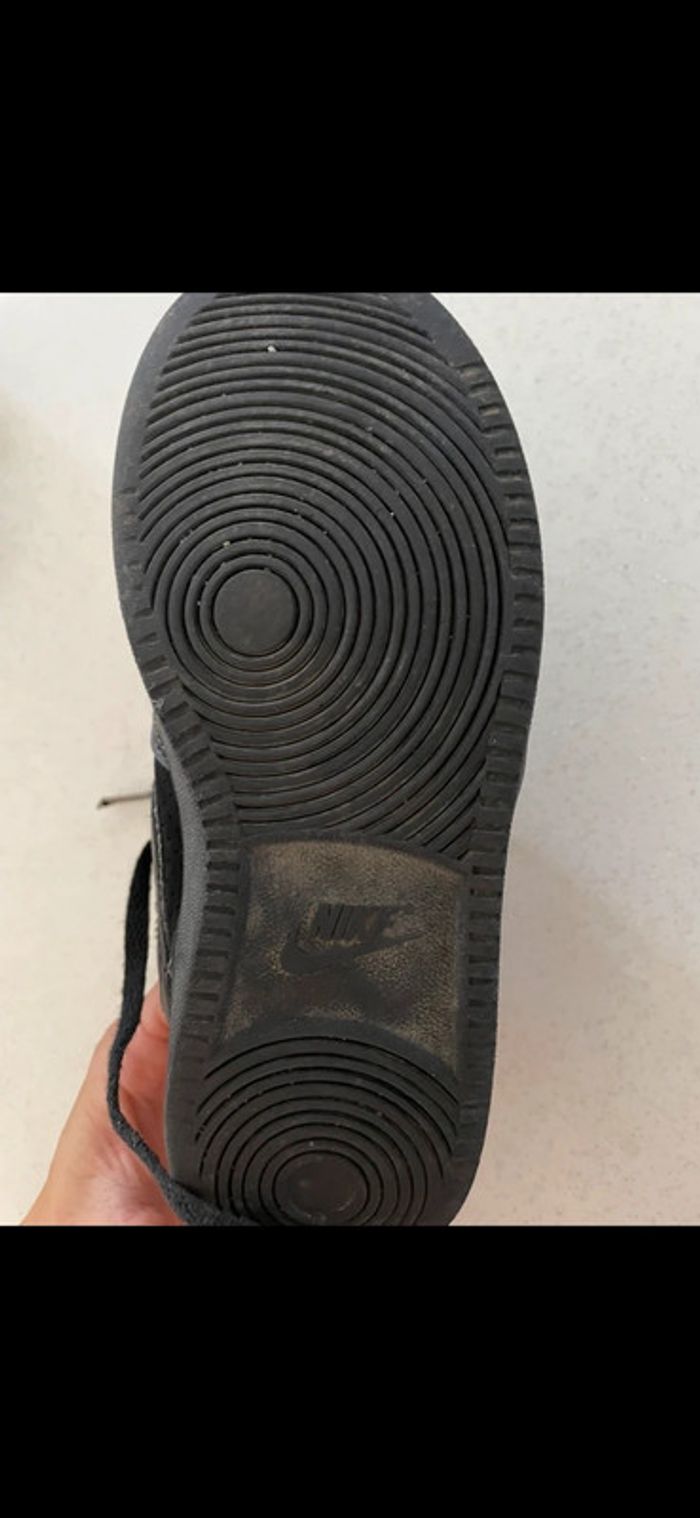 Baskets garçon Nike en état satisfaisant. Elles présentent différents défauts comme visibles sur les photos. Un des lacets est à changer. #chaussuresenfantleanelyne