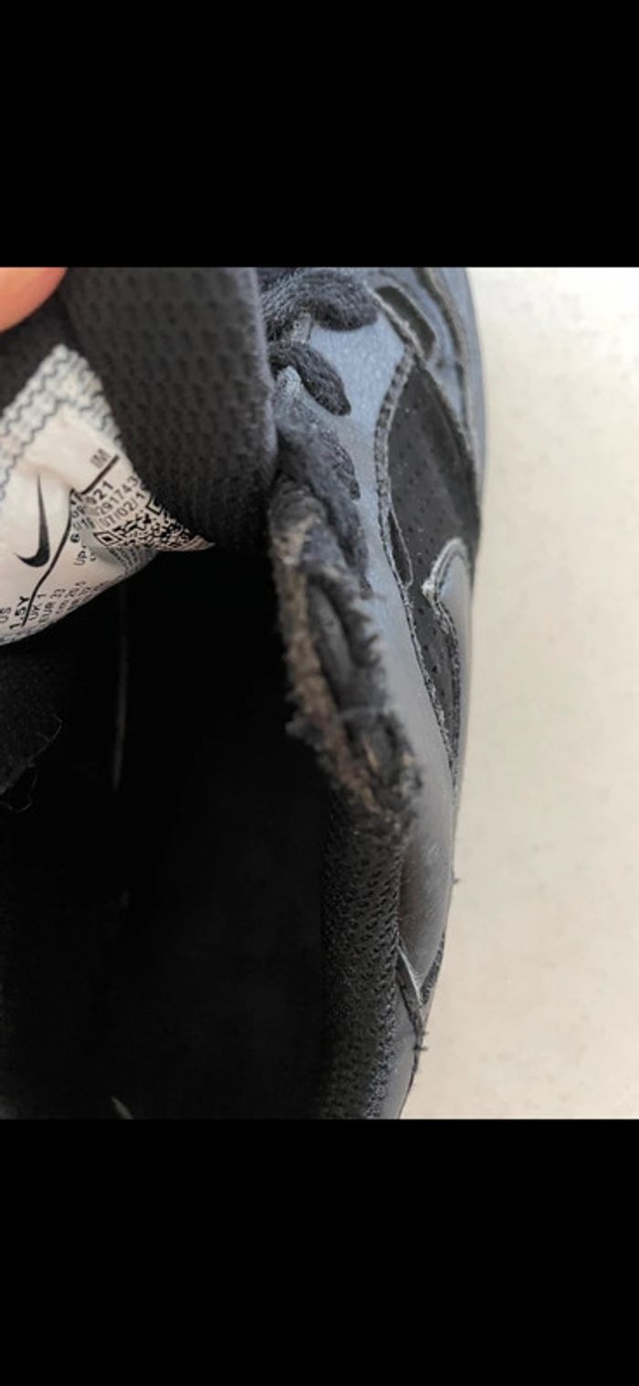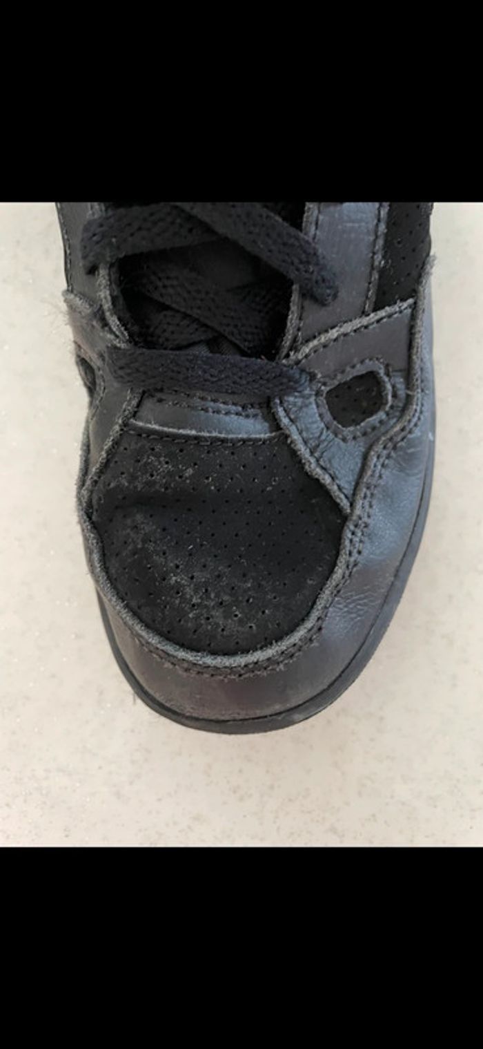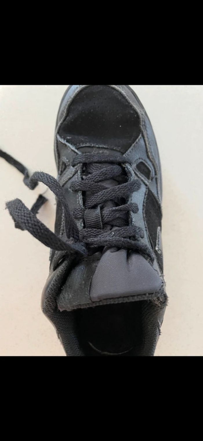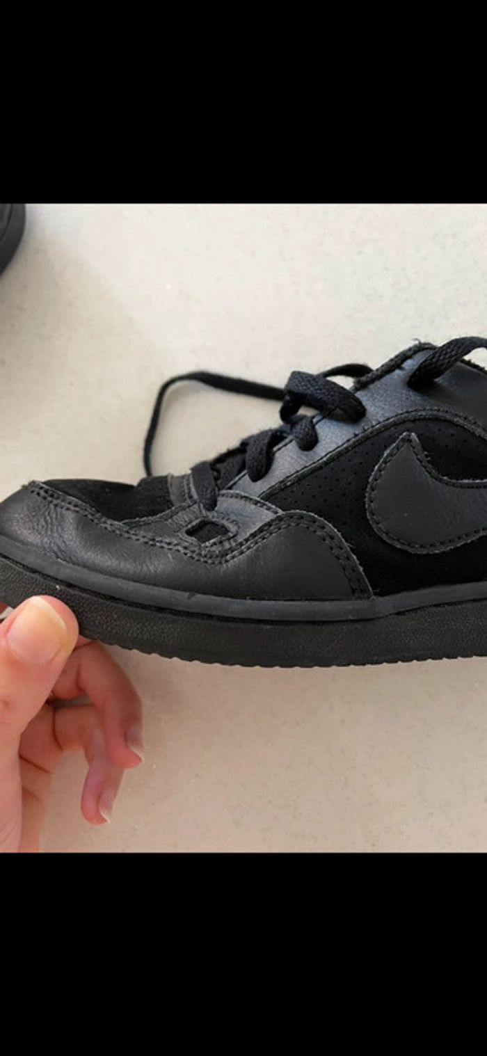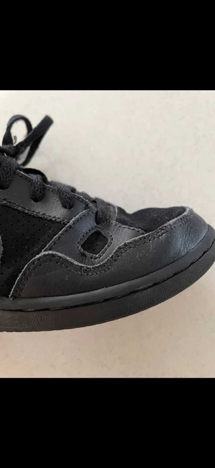Baskets garçon Nike en état satisfaisant. Elles présentent différents défauts comme visibles sur les photos. Un des lacets est à changer. #chaussuresenfantleanelyne