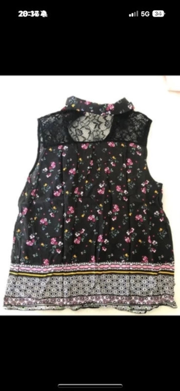 Débardeur femme Naf Naf en très bon état. Il peut s’attacher au niveau du cou avec un bouton. La noire noire est légèrement passée. #hautsfemme38leanelyne