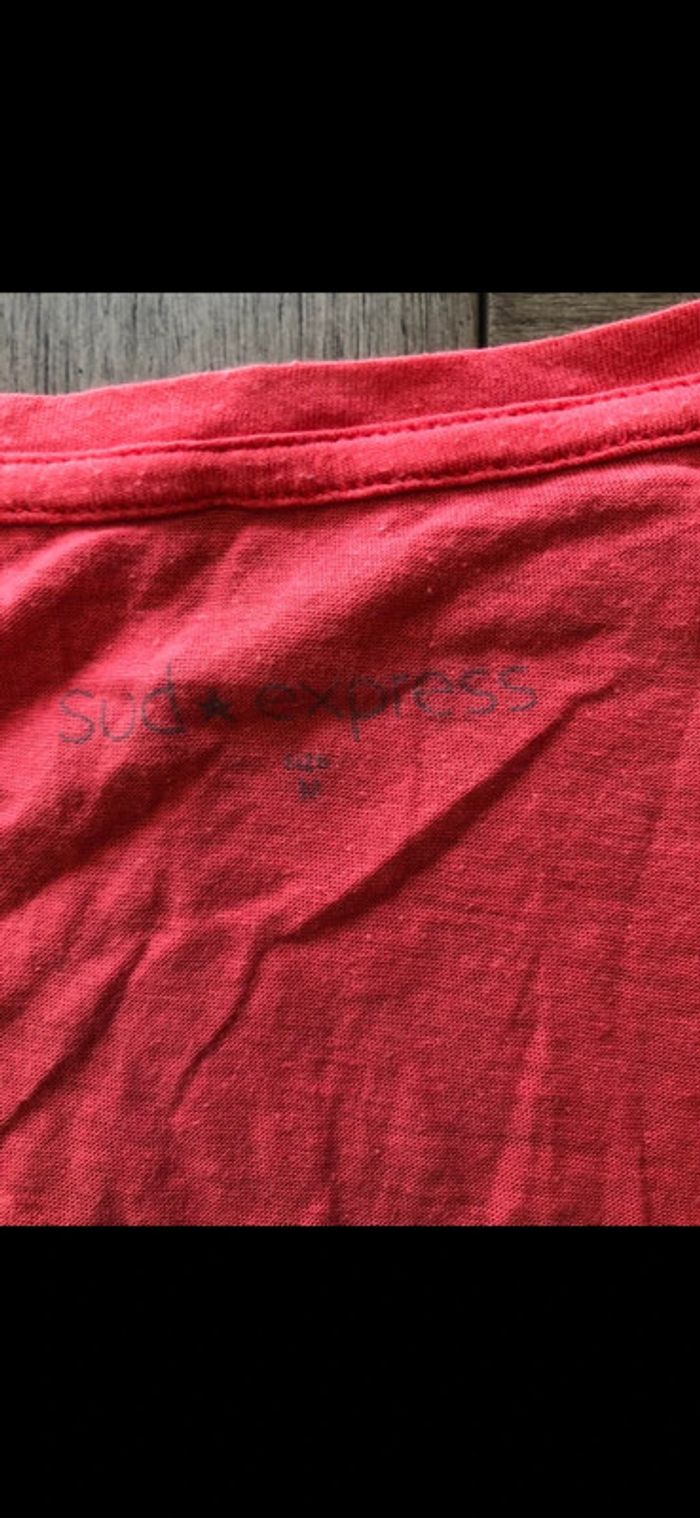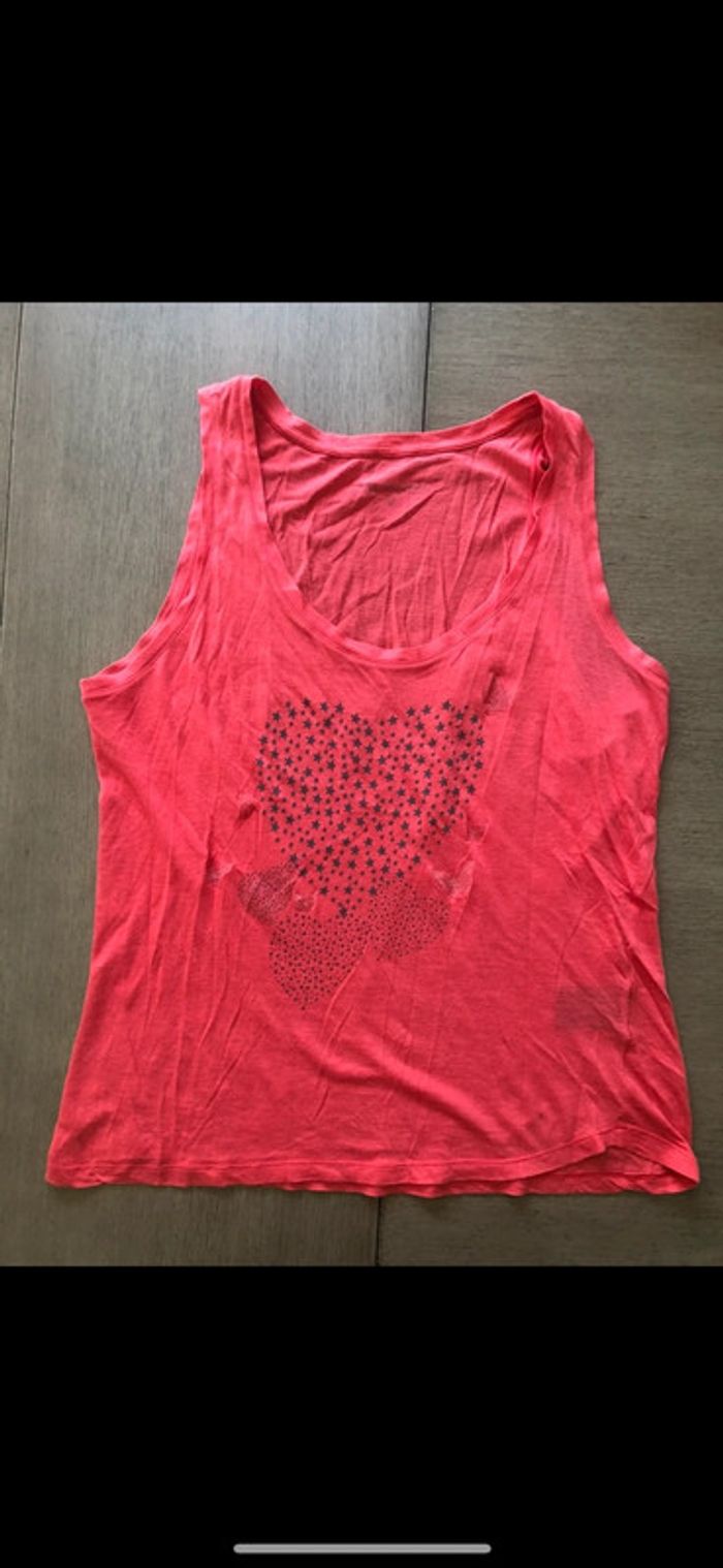 Débardeur femme Sud express en bon état. Les paillettes des papillons sont un peu parties et il est un peu bouloché comme visible sur les photos.Très jolie couleur. #hautsfemme38leanelyne