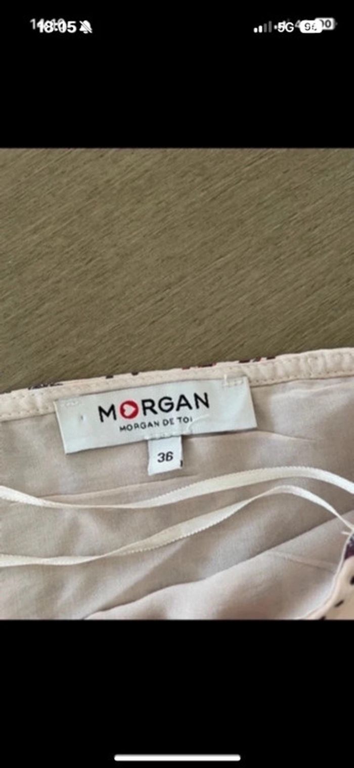 Robe femme Morgan comme neuve.Elle est ouverte dans le dos et se ferme à l’aide d’une fermeture éclair. Elle a de petits liserés dorés. Elle est doublée jusqu’aux genoux environ. #robesfemme36leanelyne
