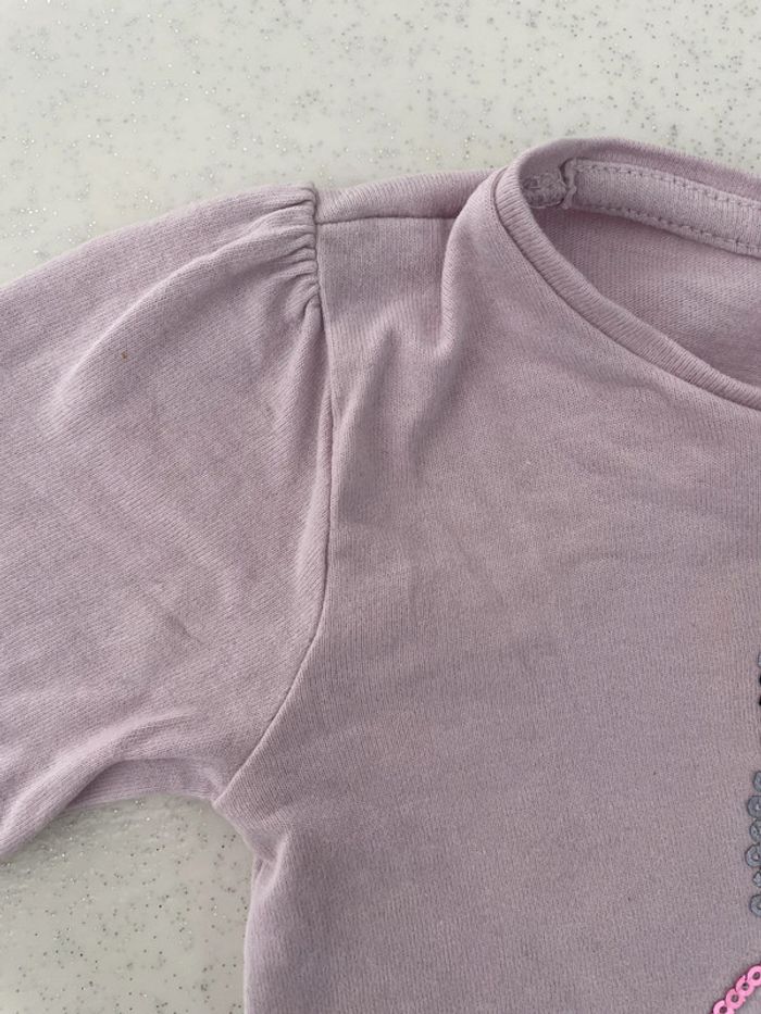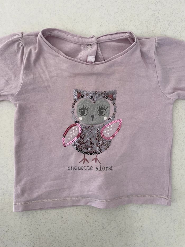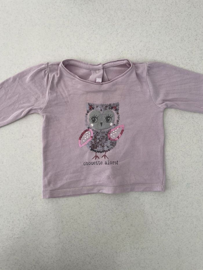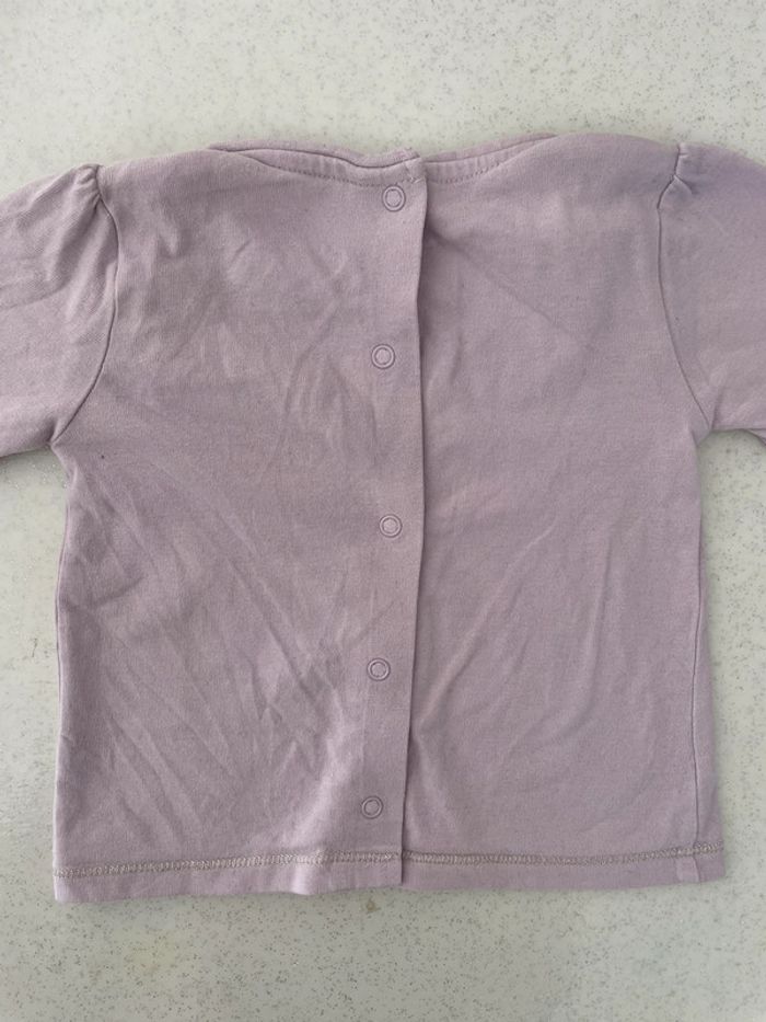 Blouse bébé fille Gémo en très bon état . La couleur violette est légèrement grisée . #hautsbebefille6moisleanelyne
