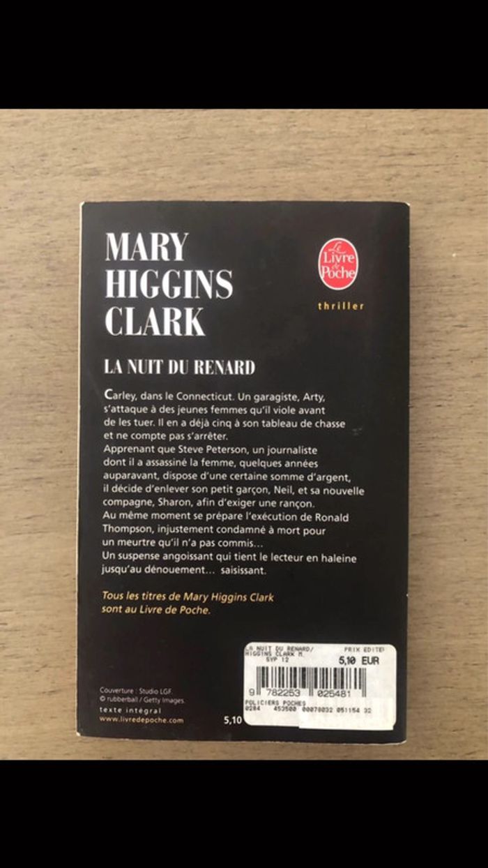 Livre « La nuit du renard » de Mary Higgins Clark en bon état. #livresadulteleanelyne