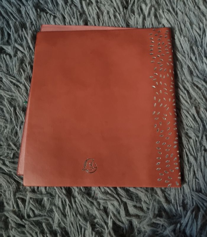 Protège cahier marron avec motifs doré ,17x16cm.