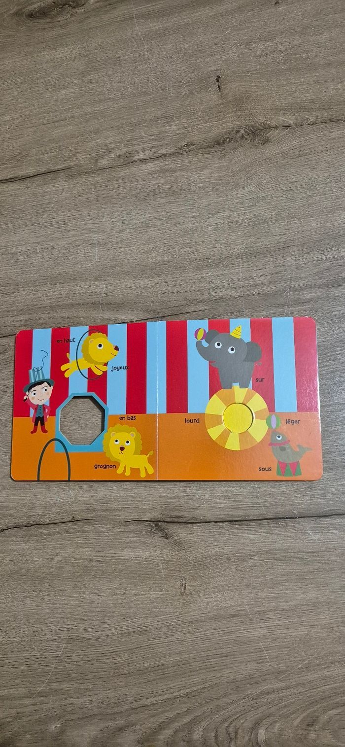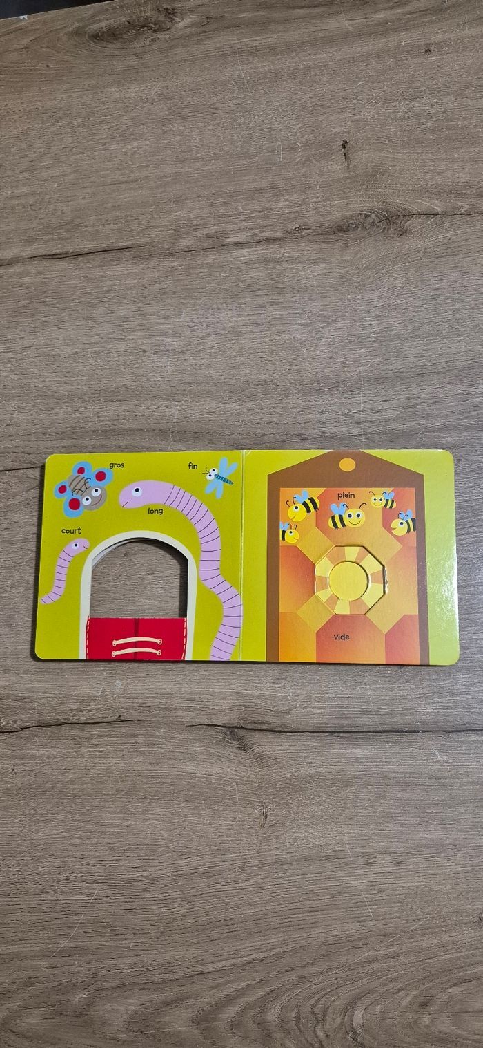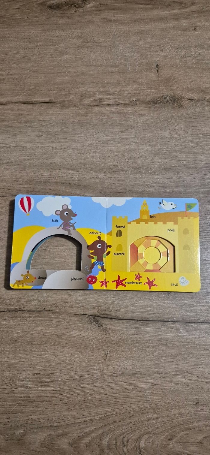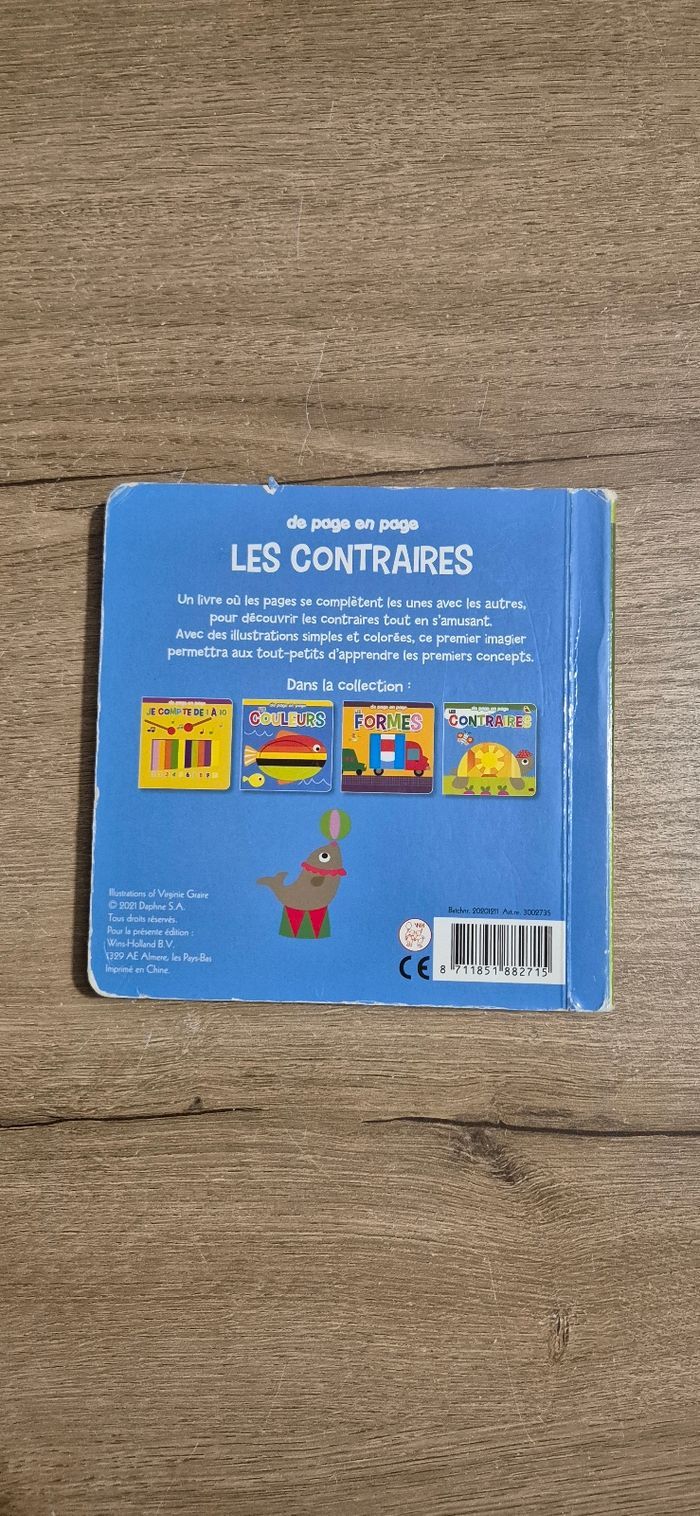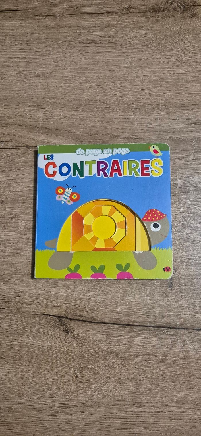 Livre Les contraires où les pages se complètent les unes avec les autres pour découvrir les contraires tout en s'amusant De page en page Très bon état (juste la couverture un peu abîmée)