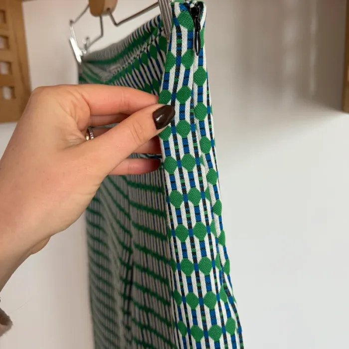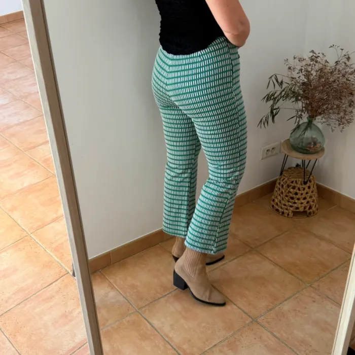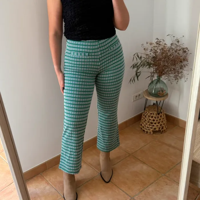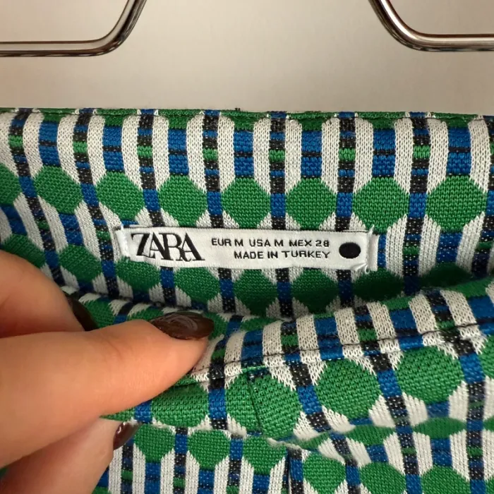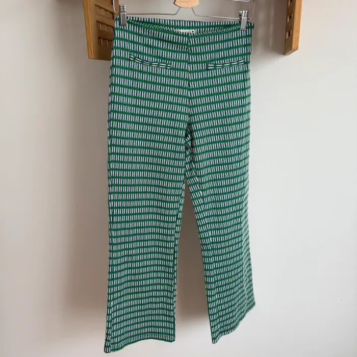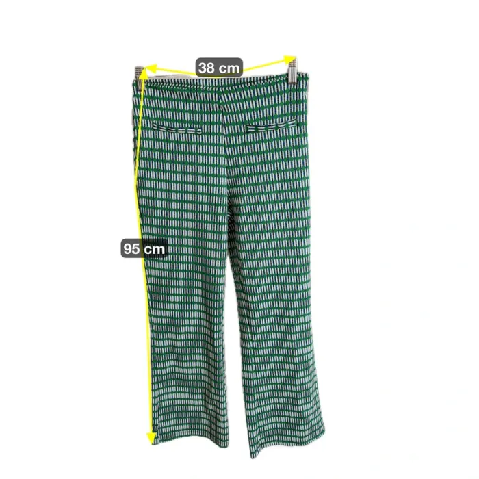 Réductions sur les lots appliquées ! Pantalon flare Zara à motifs verts et bleus, coupe flatteuse et matière confortable, parfait pour une touche rétro chic au quotidien. 📏 Mesures de référence : 165 cm, taille S/M pour les hauts, 40 pour les pantalons. poitrine 90B, taille 71 cm, hanches 98cm, fessier 106 cm. #zara #pantalon #motif #flare #retro #chic #tendance #printemps #été