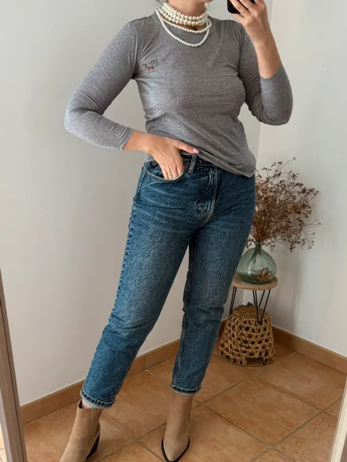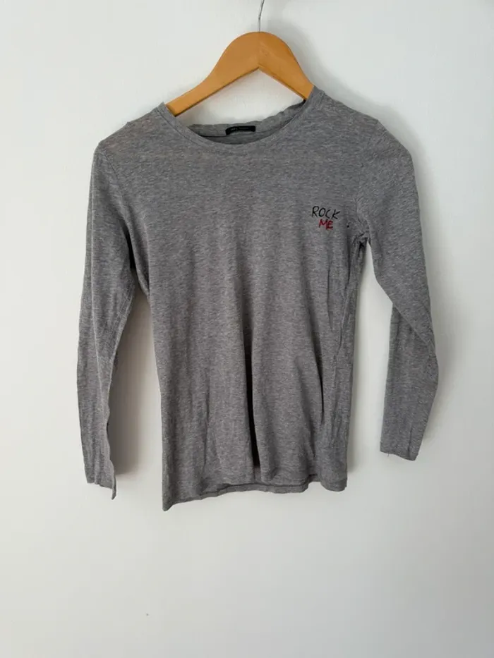 🛍️ Réductions sur les lots appliquées ! Élégant t-shirt gris IKKS à manches longues avec broderie “Rock Me” en noir et rouge. 👕 un petit trou recousu à peine visible près du logo, ajoutant une touche d’histoire à ce basique chic. Coupe ajustée en 100% coton pour un confort optimal. 📏 Mesures de référence : 165 cm, taille S/M pour les hauts, 40 pour les pantalons. poitrine 90B, taille 71 cm, hanches 98cm, fessier 106 cm. #IKKS #TshirtGris #RockMe #BasiqueChic #ModeDeuxiemeMain