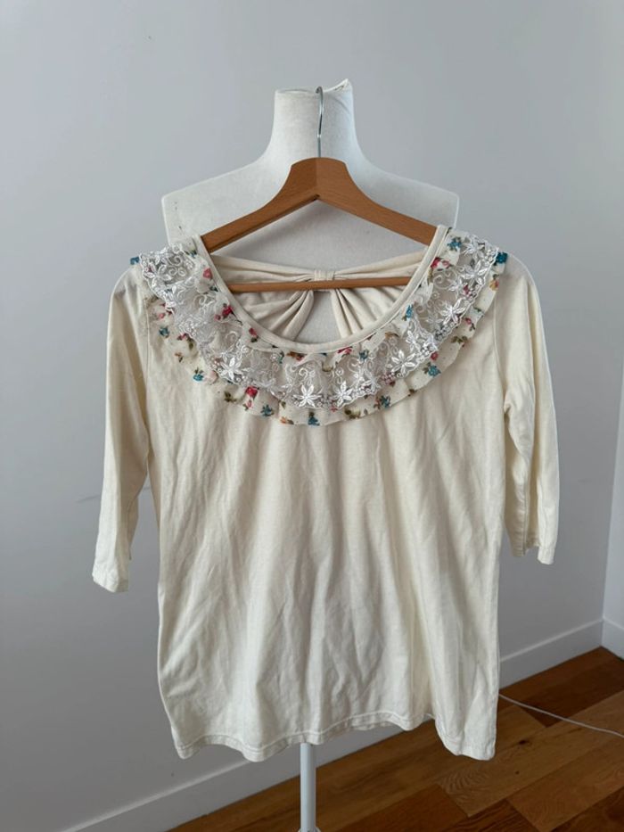 Joli haut col dentelle vintage S/36 - photo numéro 2