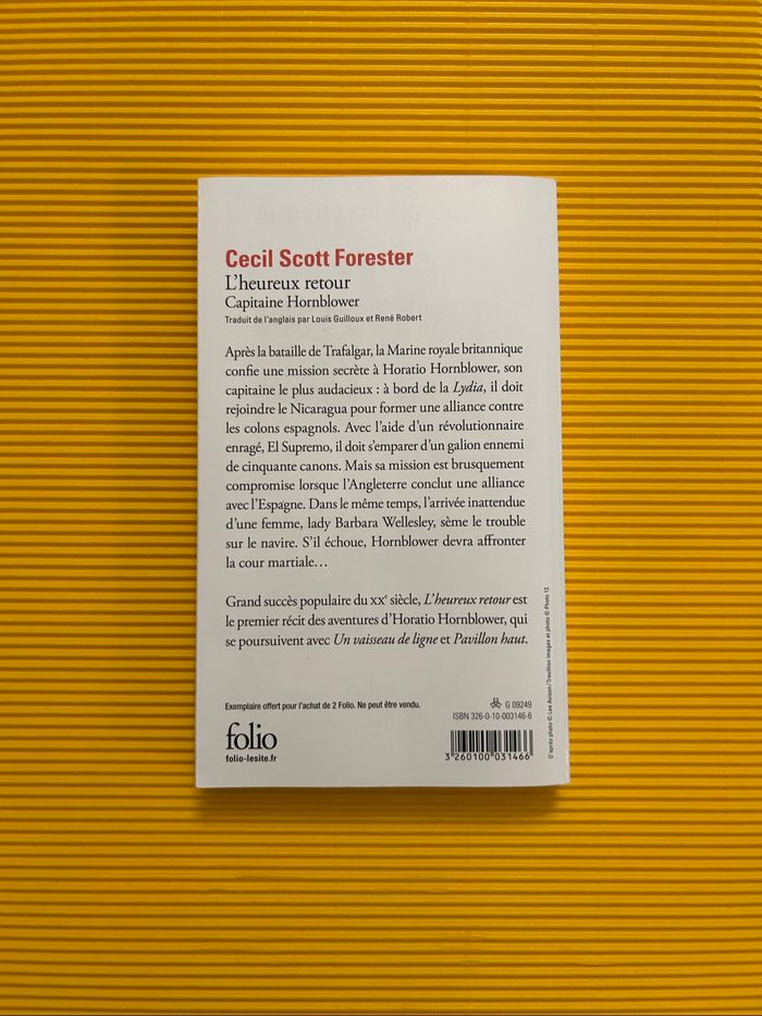 Je vends ce livre état neuf Titre ; L’heureux retour Capitaine Hornblower Auteur Cécile Scott Forester Édition Galimmard Folio 336 pages Dimensions 10.8 x 1.4 x 17.7 cm Livre 1 sur 5 série Capitaine Hornblower Envoi rapide et soigné