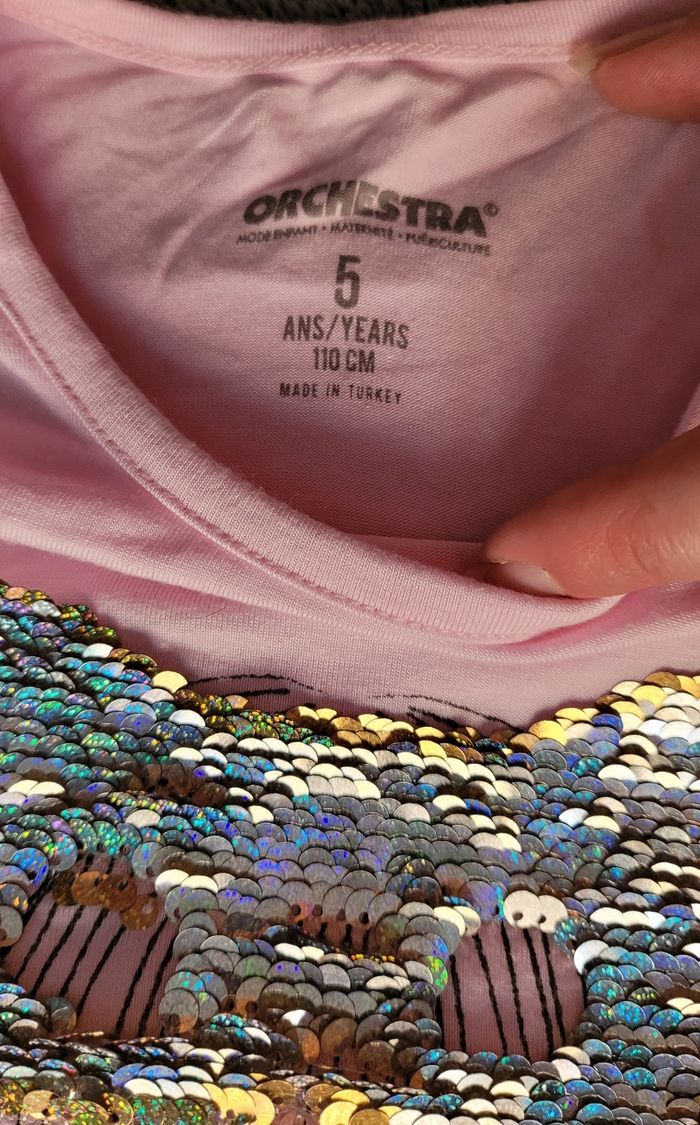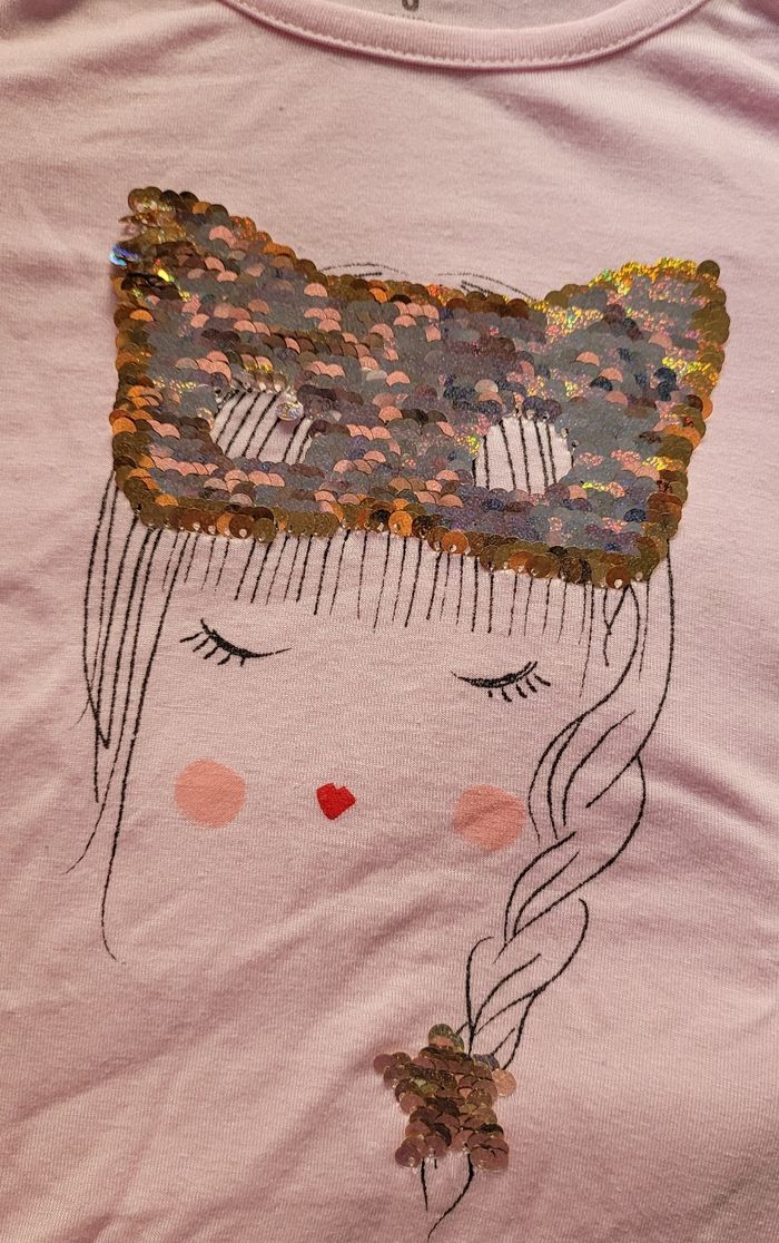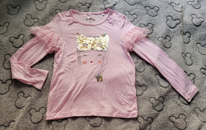 Joli tee-shirt manches longues Sequins réversibles Volants en tulle aux manches #fille5anstattoogirl_3