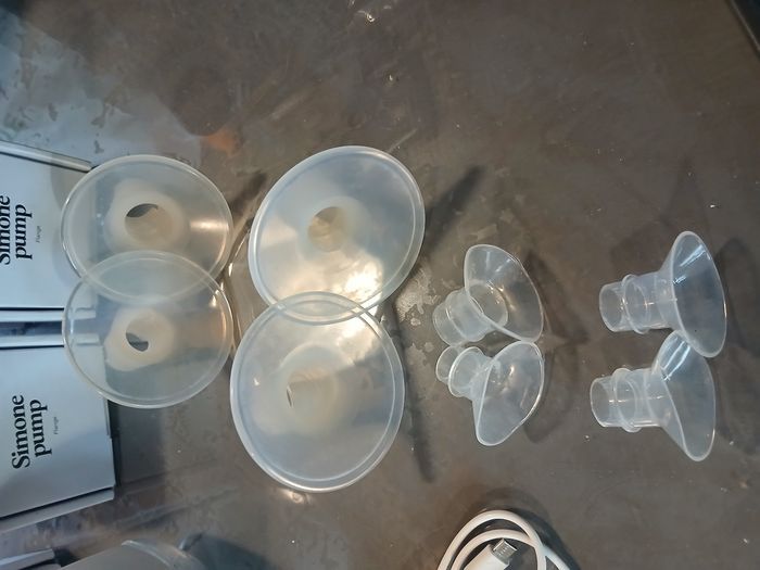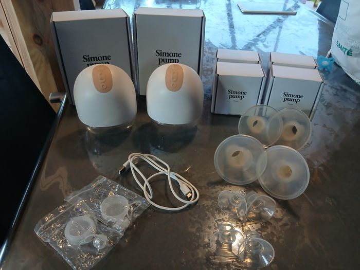 Vends tire lait Simone pump double avec téterelles taille 21et 24 (+ téterelles adaptable taille 16 17 18 et 19) très peu utilisé car allaitement mixte Je donne avec ça des petites bouteilles stériles + sacs congélation + bouteilles et téterelles pour tire lait spectra