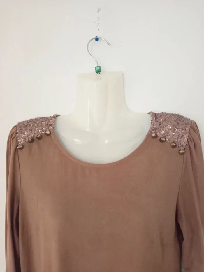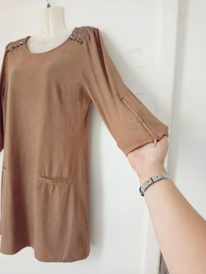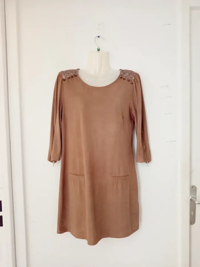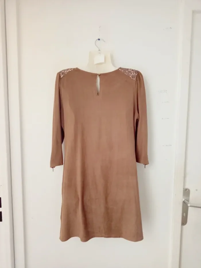 Robe en daim manches 3/4 avec clou et strass femme c - photo numéro 1