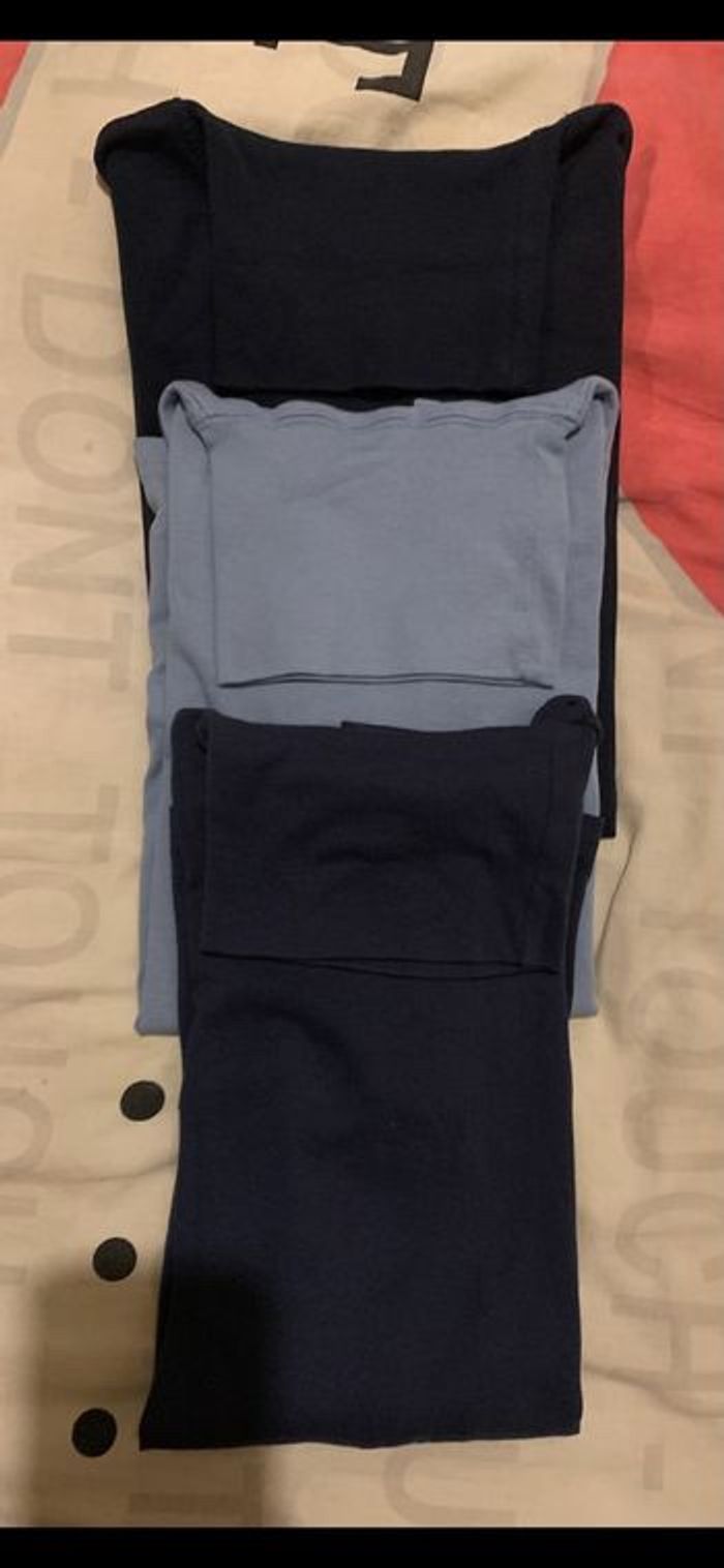 3 sous pull colle rouler matière tee shirt coton comme neuf marque la hall couleur noir bleu claire et bleu marine état impeccable