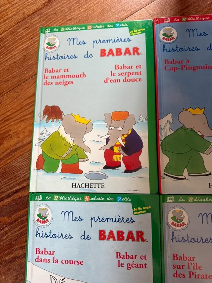 Lot de 4 livres vintage 8 histoires anciennes de Babar l’éléphant Envoi rapide et soigné Lot non négociable et non dissociable comportant : Babar sur l’île des pirates Babar et la mystérieuse carte d’aventures Babar à Cap Pingouin Babar au pays des sorcières Babar dans la course Babar et le géant Babar et le mammouth des neiges Babar et le serpent d’eau douce