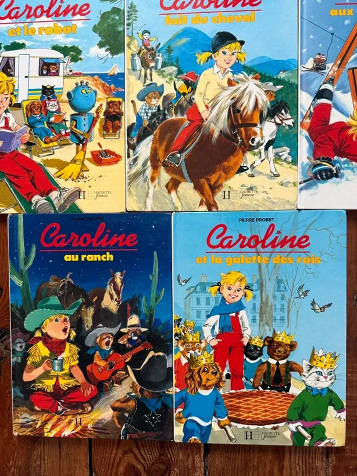 Bon état général, livres complets sans défauts majeurs - petits accrocs ou fragilité reliure. ☺️ Envoi rapide et très soigné. Lot non négociable et non dissociable comportant : Caroline et le robot Caroline au Ranch Caroline fait du cheval Caroline aux sports d’hiver Caroline et la galette des rois Caroline en vacances Caroline aux Indes Caroline et son automobile