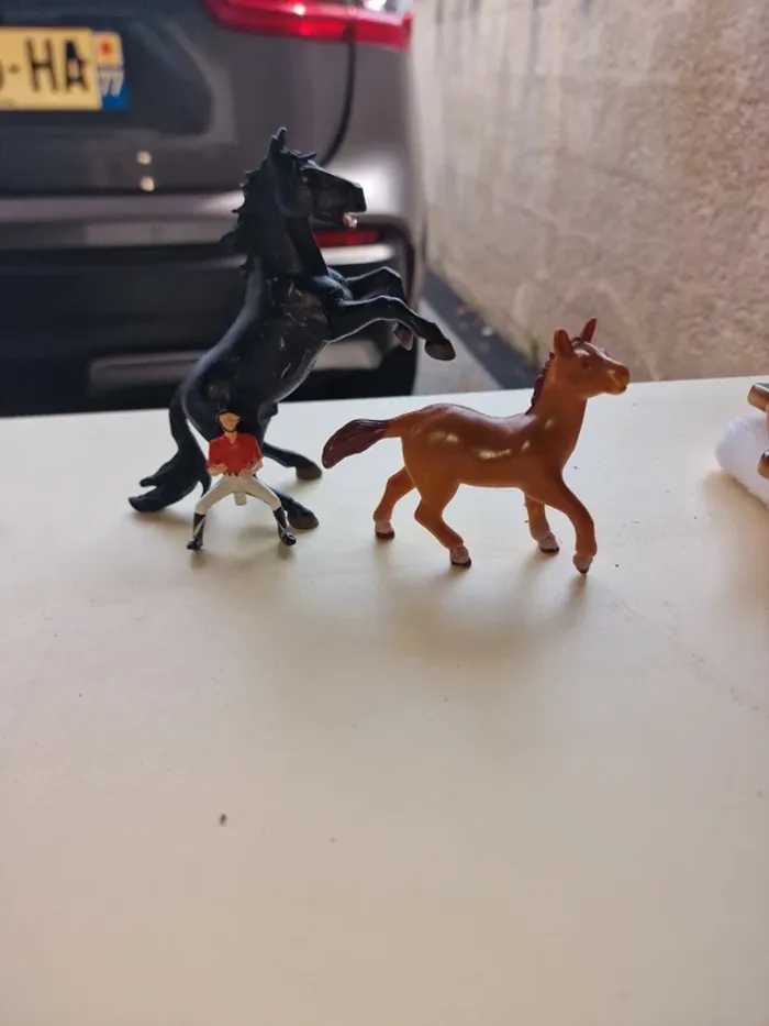 Lot de chevaux et un cavalier Le cheval noir est un papo Bien utilisé => cf photos Tous mes jouets sur #jouetstitimandine