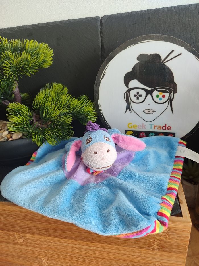 doudou carré plat bourriquet bleu violet rayé écharpe Disney nicotoy Jaune Vert - photo numéro 1