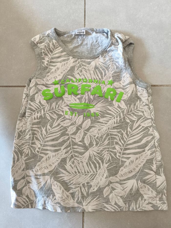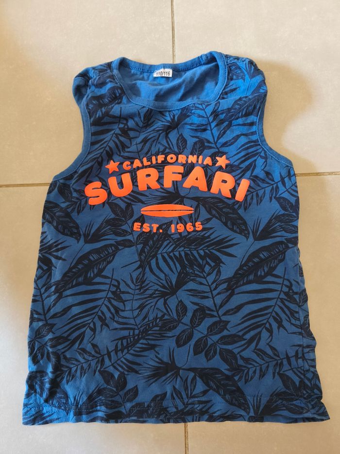 Lot de 3 vêtements pour enfants garçon taille 5 ans. - 1 gilet bleu marine et détails marron , tape à l'oeil , poches de chaque côté . - 2 t-shirts manches courtes / débardeur, un gris motifs vert, un bleu motif orange, planche de surf. Possibilité de faire un lot une réduction est appliquée dès deux articles n'hésitez pas à me contacter. En vente également d'autres vêtements, d'autres tailles, des jeux, des livres, tout n'est pas encore en ligne