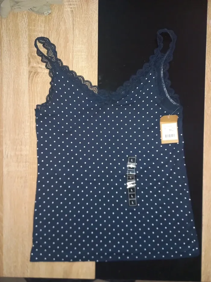 Débardeur femme bleu marine et poids blanc Neuf. Dimensions sur photos
