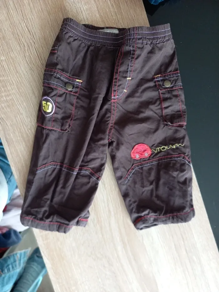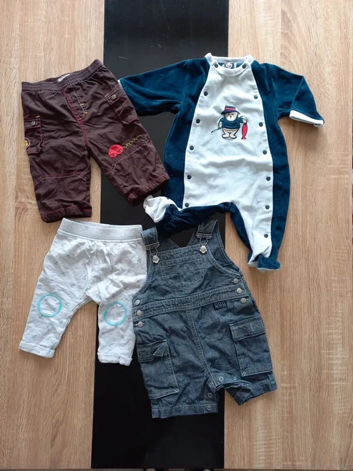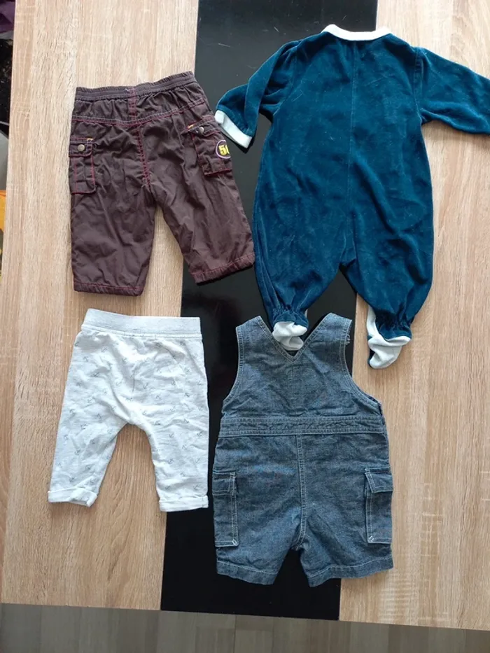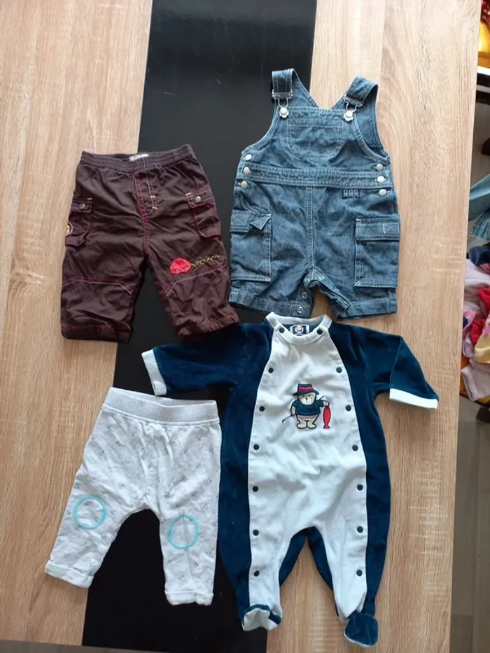 Lot bébé en très bon état. Combi short en jeans, 2 pantalons et 1 pyjama