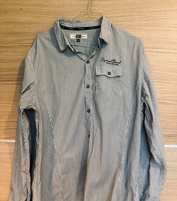 Chemise homme Kaporal grise et rayée noire. Très bonne état juste un peu froissée sur la photo