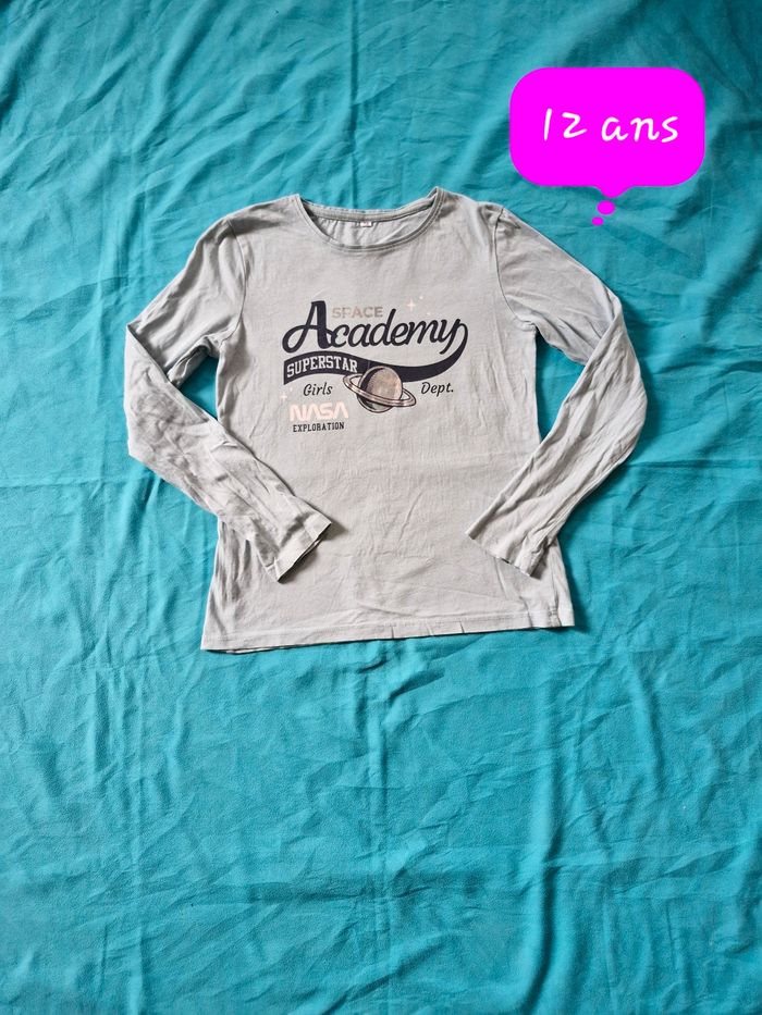 T-shirt manches longues fille 👧 Taille 12 ans Sans marque Bleu clair Réduction sur les lots activé 😊