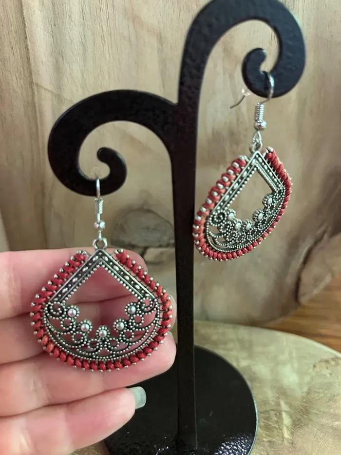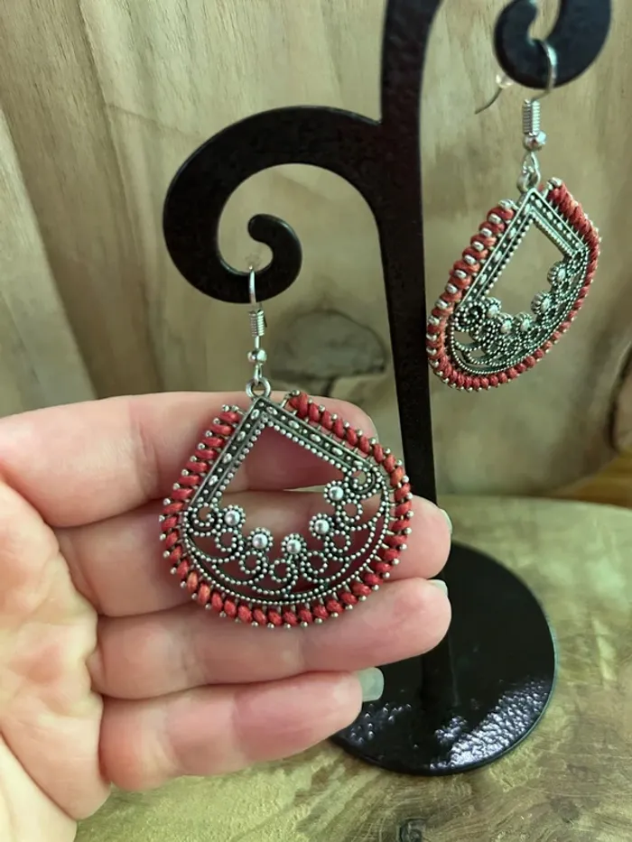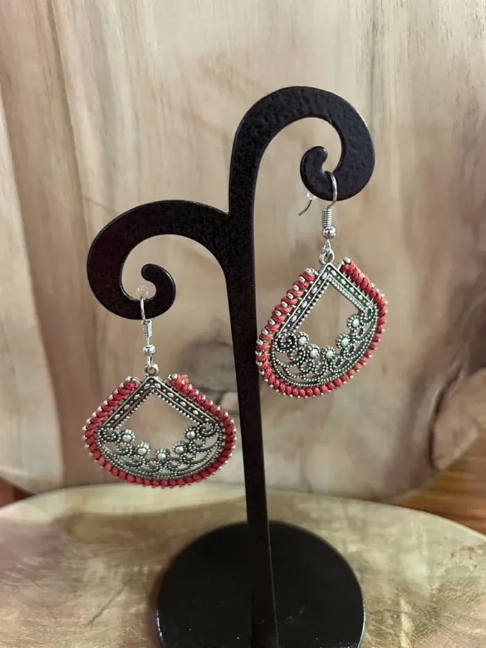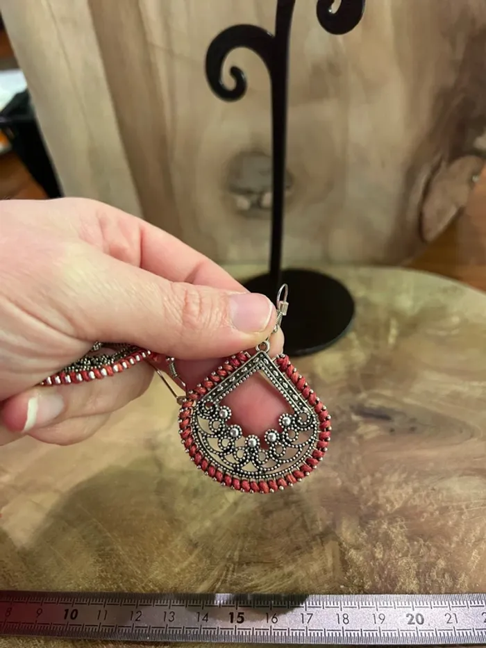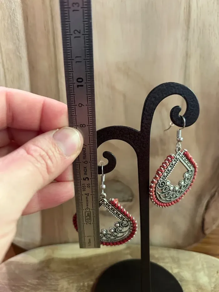 Boucles d'oreilles Dimensions voir photo Tissu légèrement décoloré, peut être enlevé et/ ou remplacé.