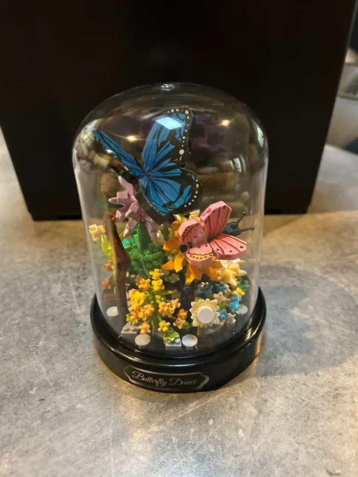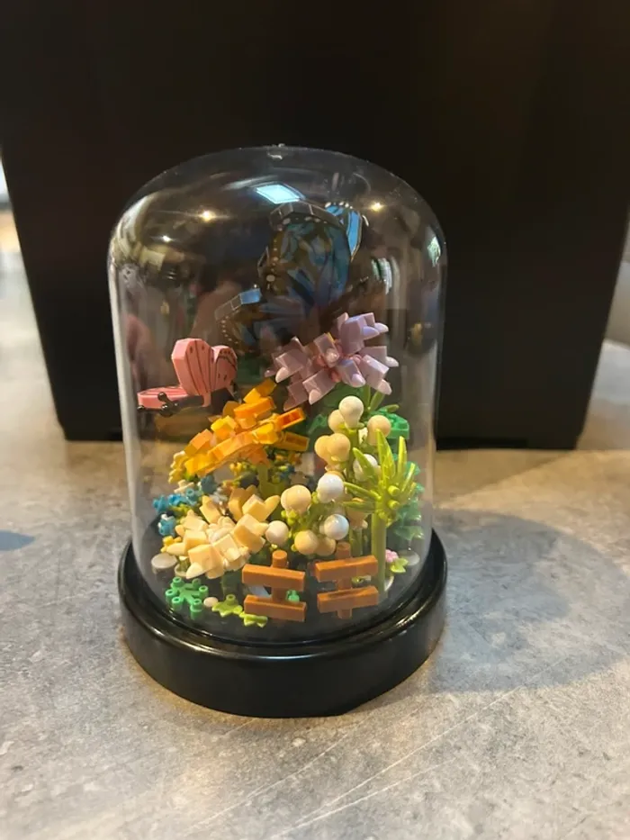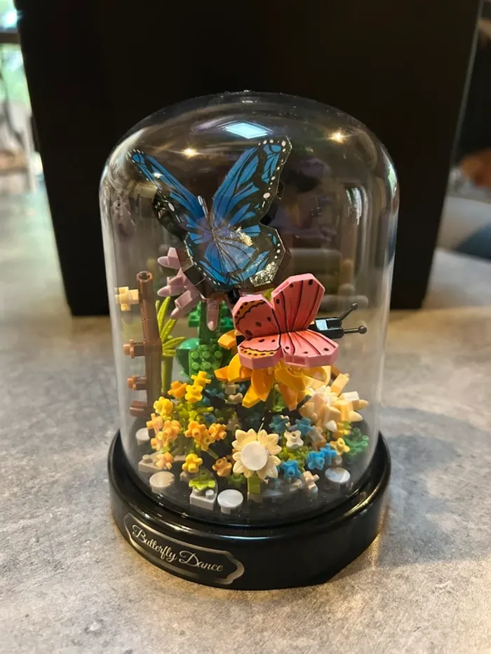 Mini bloc de construction papillons et fleurs sous cloche - photo numéro 1