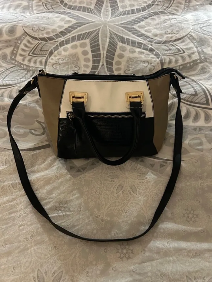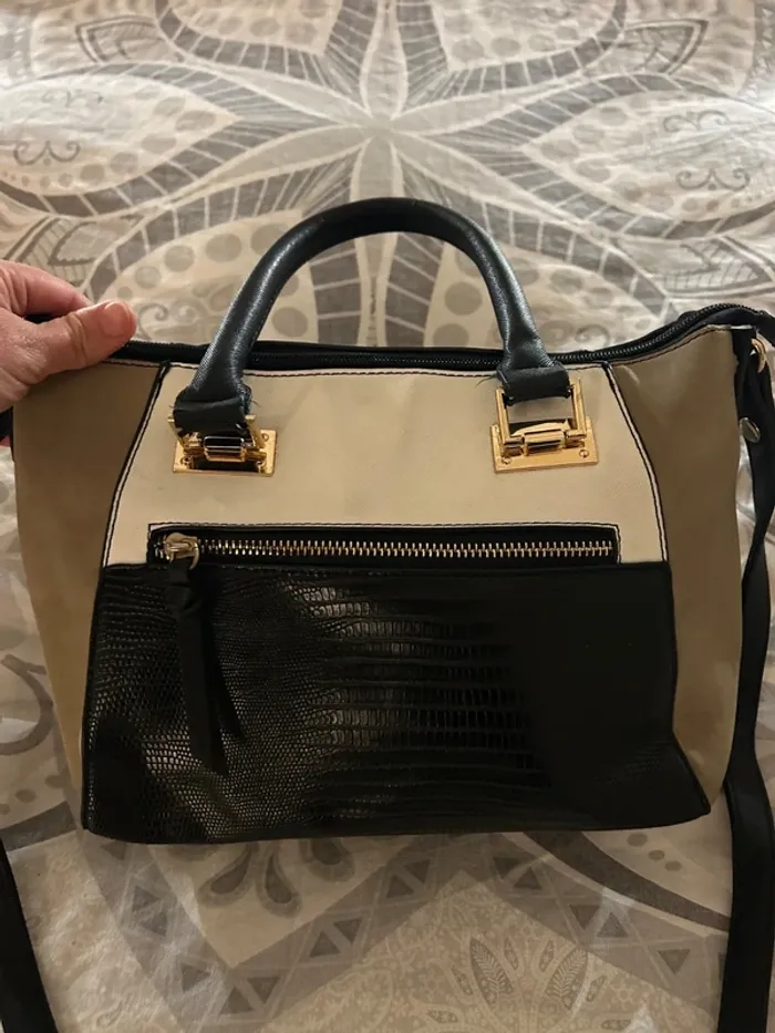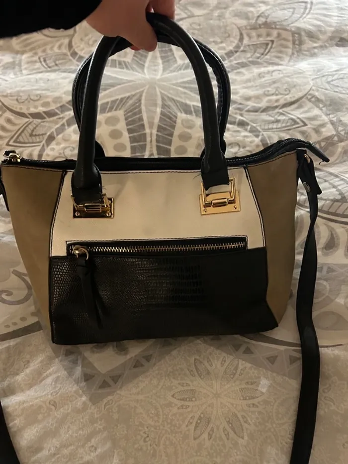 Sac à main noir, blanc et marron clair - photo numéro 1