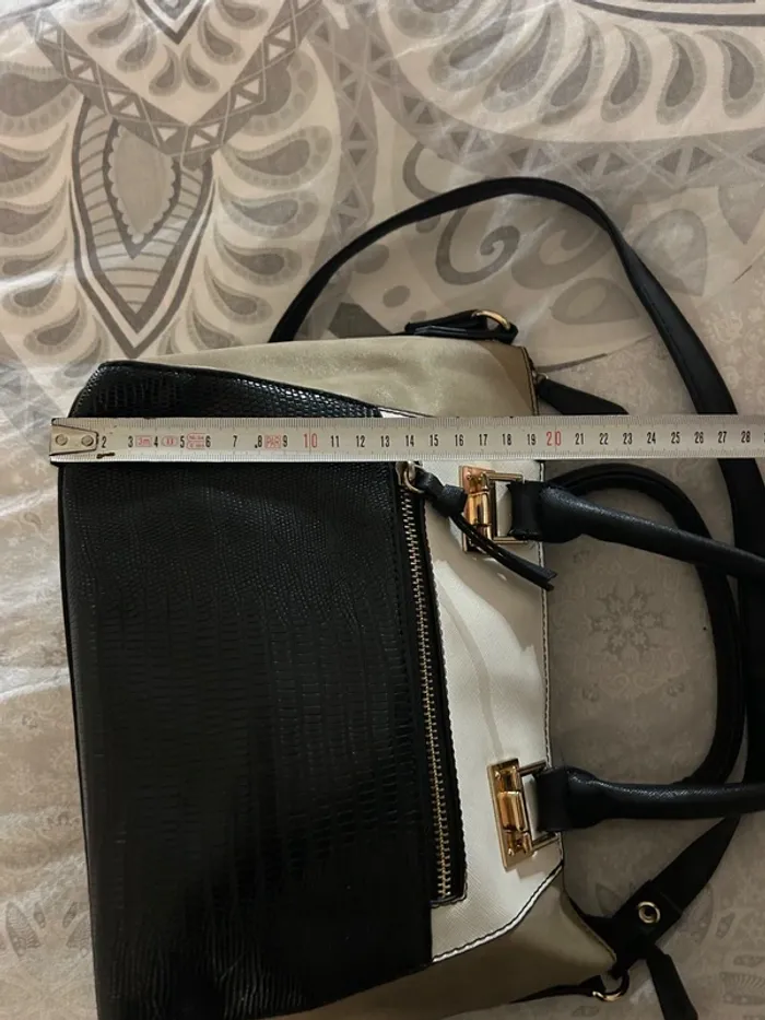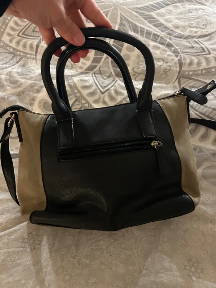 Sac à main noir, blanc et marron clair - photo numéro 3