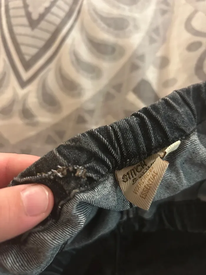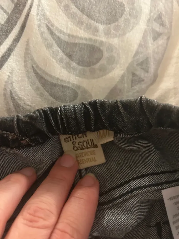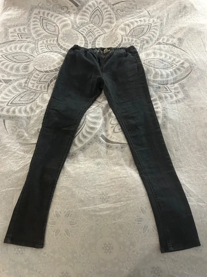 Pantalon style jeggins gris foncé Ceinture élastique Trou recousu au niveau de la ceinture intérieur. Taille M/L
