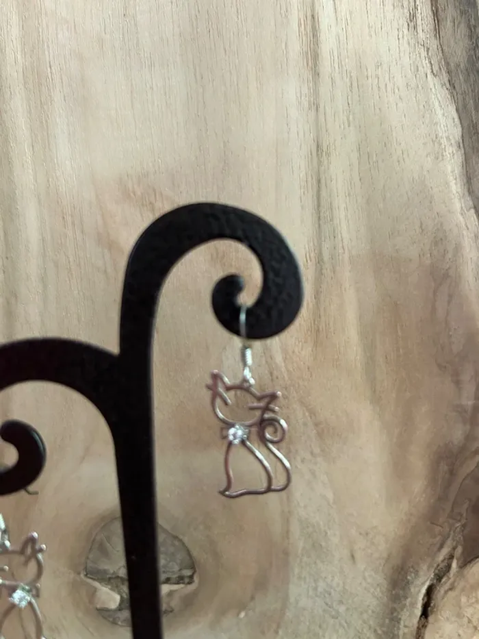 Boucles d'oreilles chat en argent - photo numéro 2