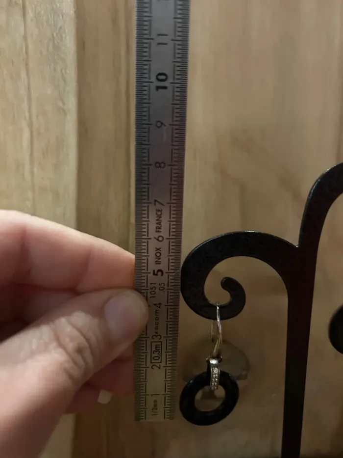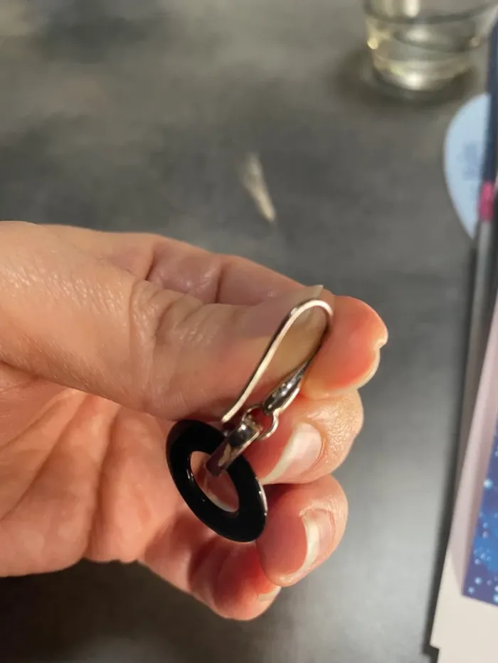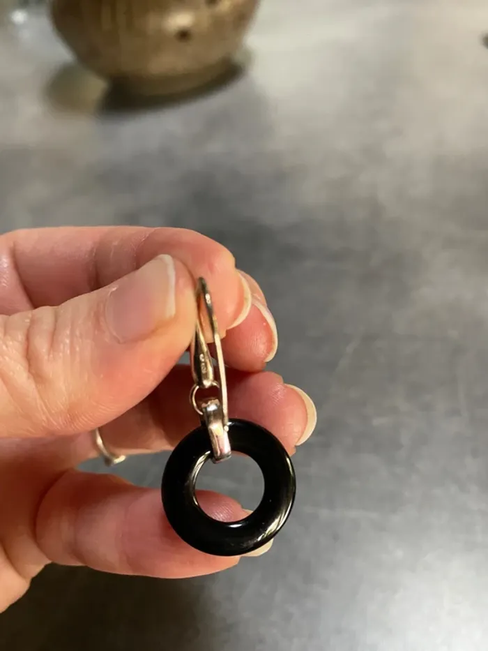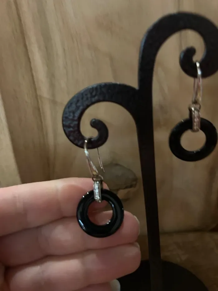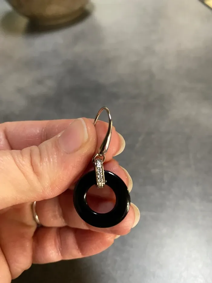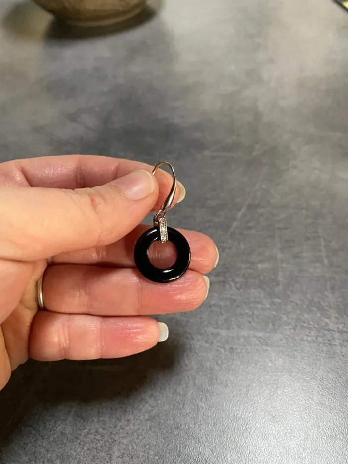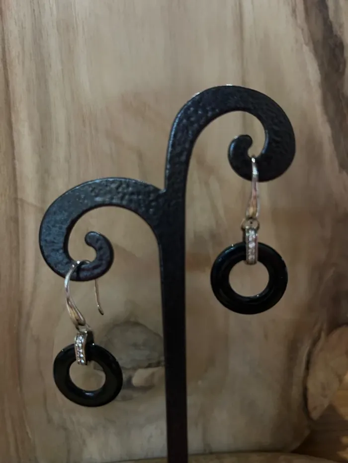 Boucles d'oreilles argent, céramique noir et oxyde de zirconium. Dimensions voir photo