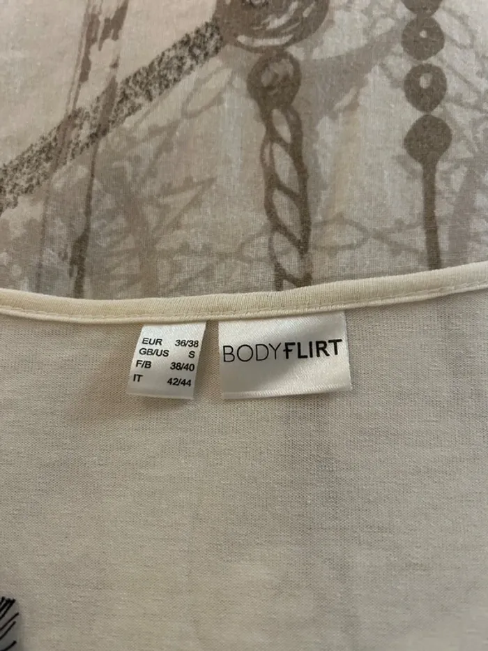 Haut manche longue blanc dentelle noir au col Porté 1 fois Marque body flirt taille 38/40