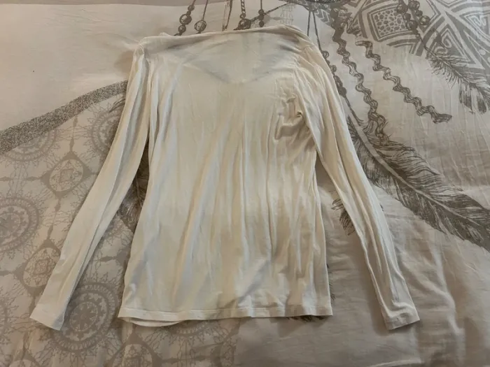 Haut manche longue blanc dentelle noir au col - photo numéro 1