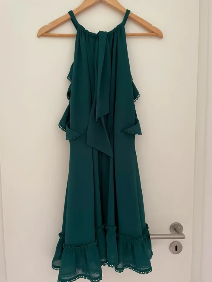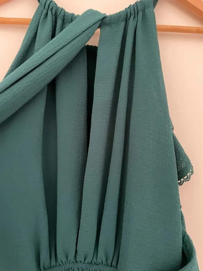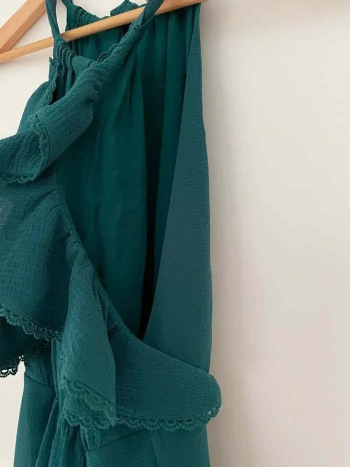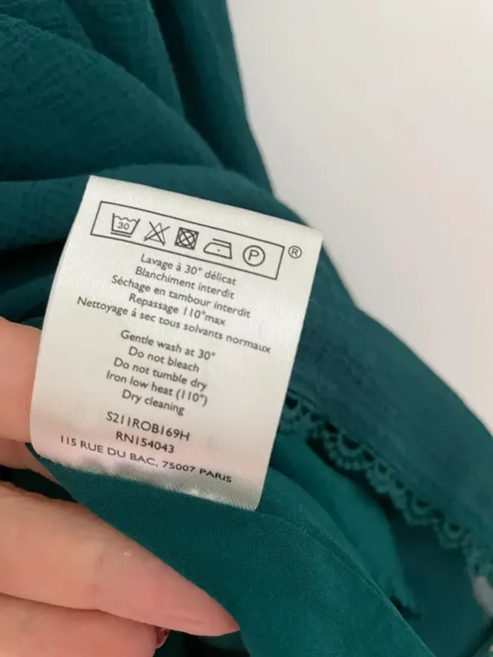 Magnifique robe courte de la marque Sézane, couleur vert émeraude, tissu léger et fluide.