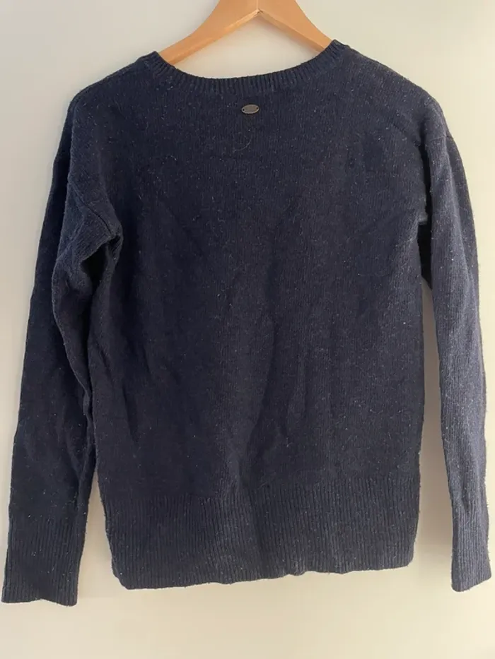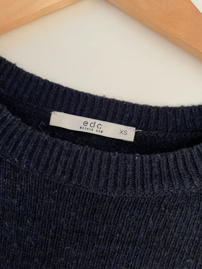 Pull bleu marine Marque esprit edc Pompons multicolores Taille Xs Quelques bouloches #cathou1818femmexs