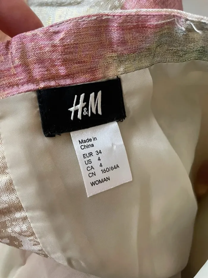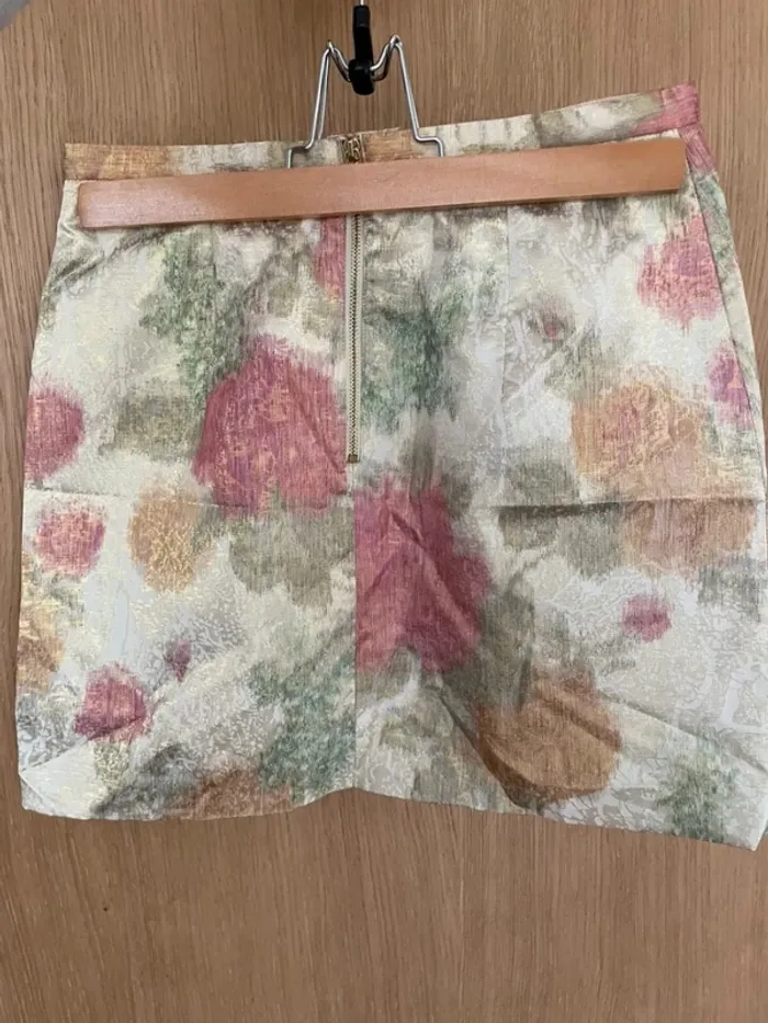 Très jolie jupe courte marque H&M taille 34 motif fleurs avec fil doré fermeture éclair à l’arrière 📏Dimensions: 34cm a la taille 38cm en longueur 🏷Composition: 57% polyester 26% viscose 17% fibre métallisée 👉🏻 Retrouvez tous mes vêtements femme taille XS via le lien suivant: #cathou1818femmexs