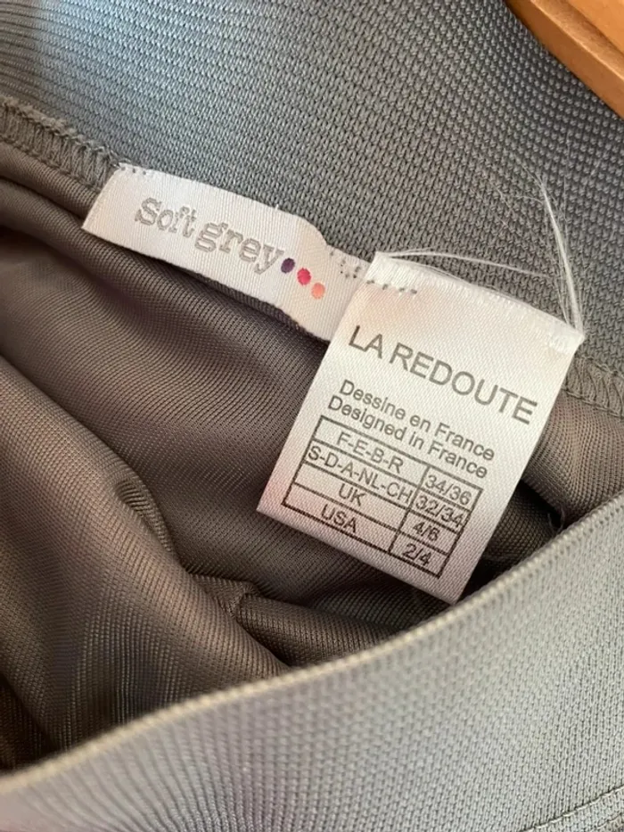 jolie petite jupe à volants de la marque soft grey la redoute taille 34-36 couleur grise taille élastique 📏longueur 40cm largeur à la taille 34cm petit accroc à l’arrière #cathou1818femmexs #cathou1818femmes