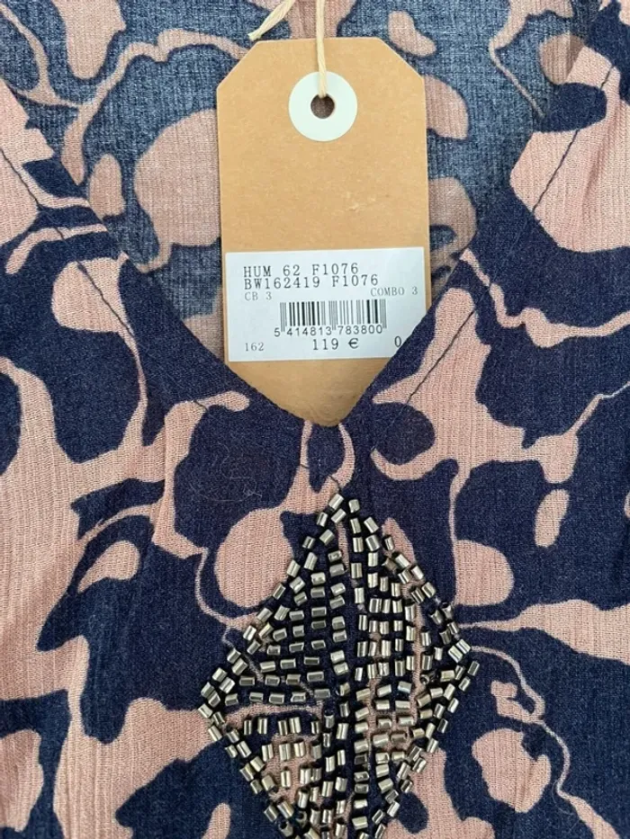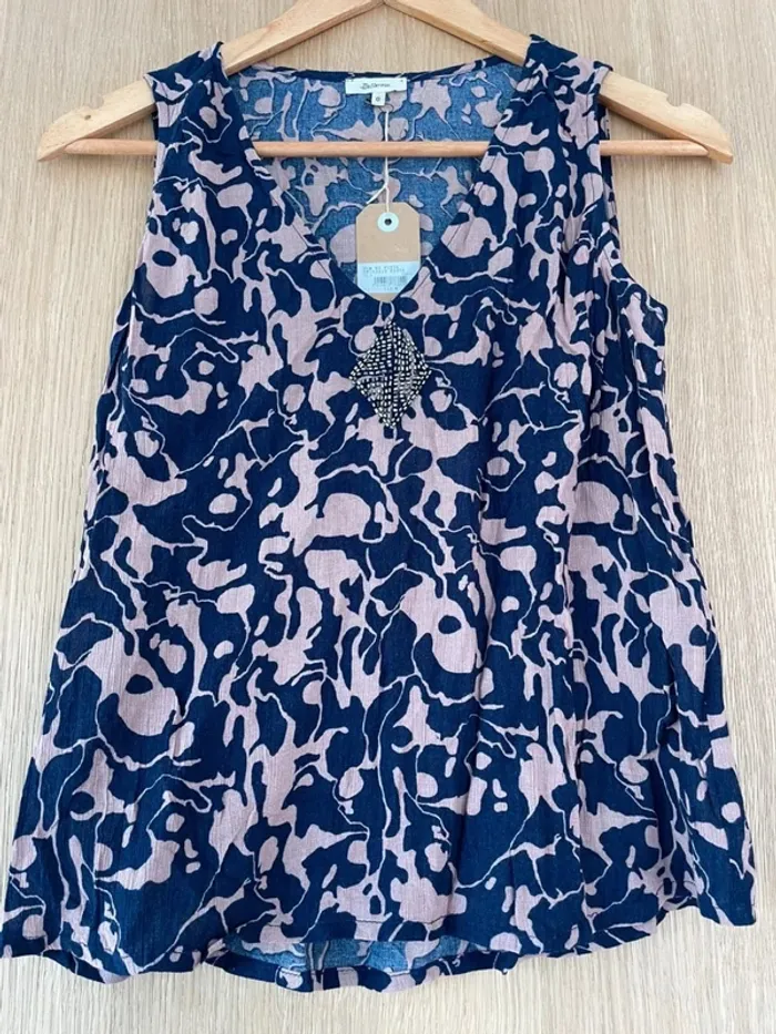 Débardeur Bellerose taille 0 neuf avec étiquette couleur bleu et rose broderie en perles sur le décolleté 100% viscose #cathou1818femmexs