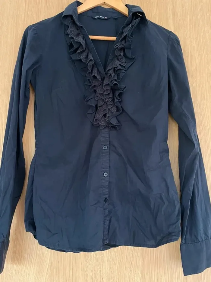 Chemise manches longues bleu marine river Woods taille 34 Magnifique col froufrou #cathou1818femmexs
