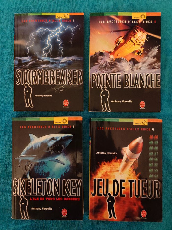 Lot de 4 livres Les aventures d'Alex Rider Tome 1 : Stormbreaker Tome 2 : Skeleton Key Tome 3 : Pointe blanche Tome 4 : Jeu de tueur